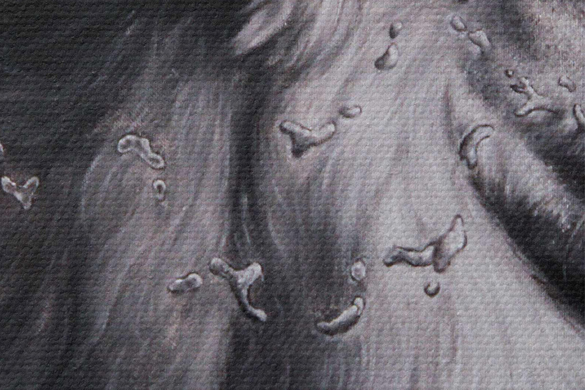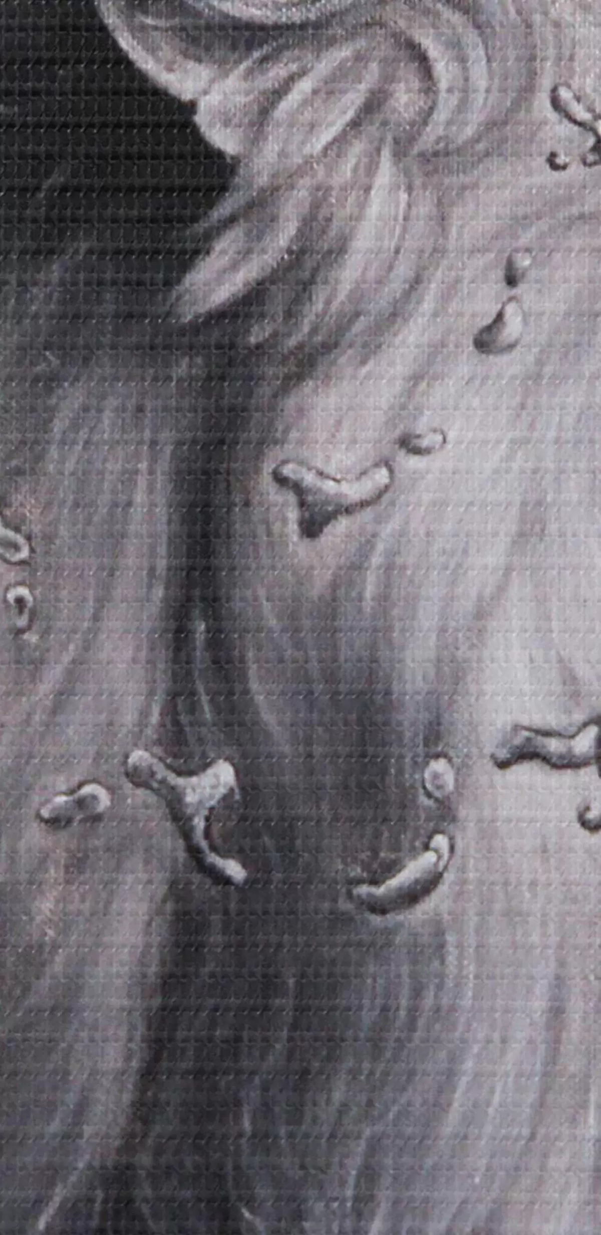Țesătura fină a firelor de pe această pânză seamănă cu suprafața pânzelor artiștilor profesioniști.