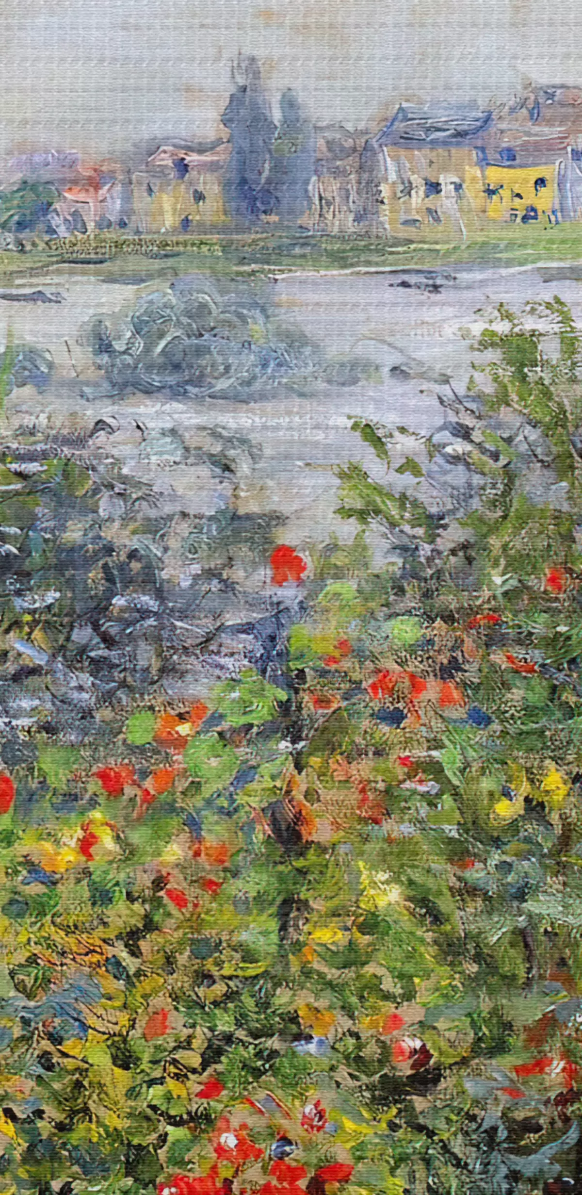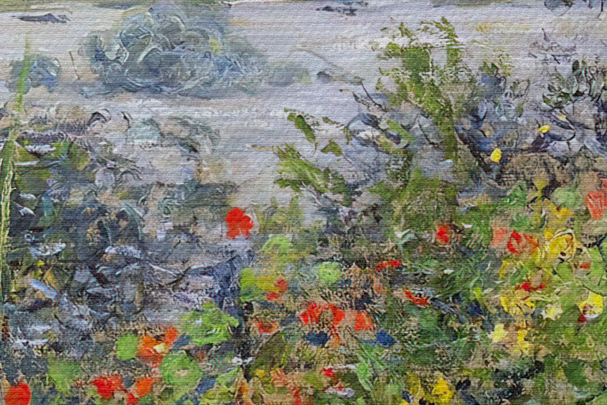 Țesătura fină a firelor de pe această pânză seamănă cu suprafața pânzelor artiștilor profesioniști.