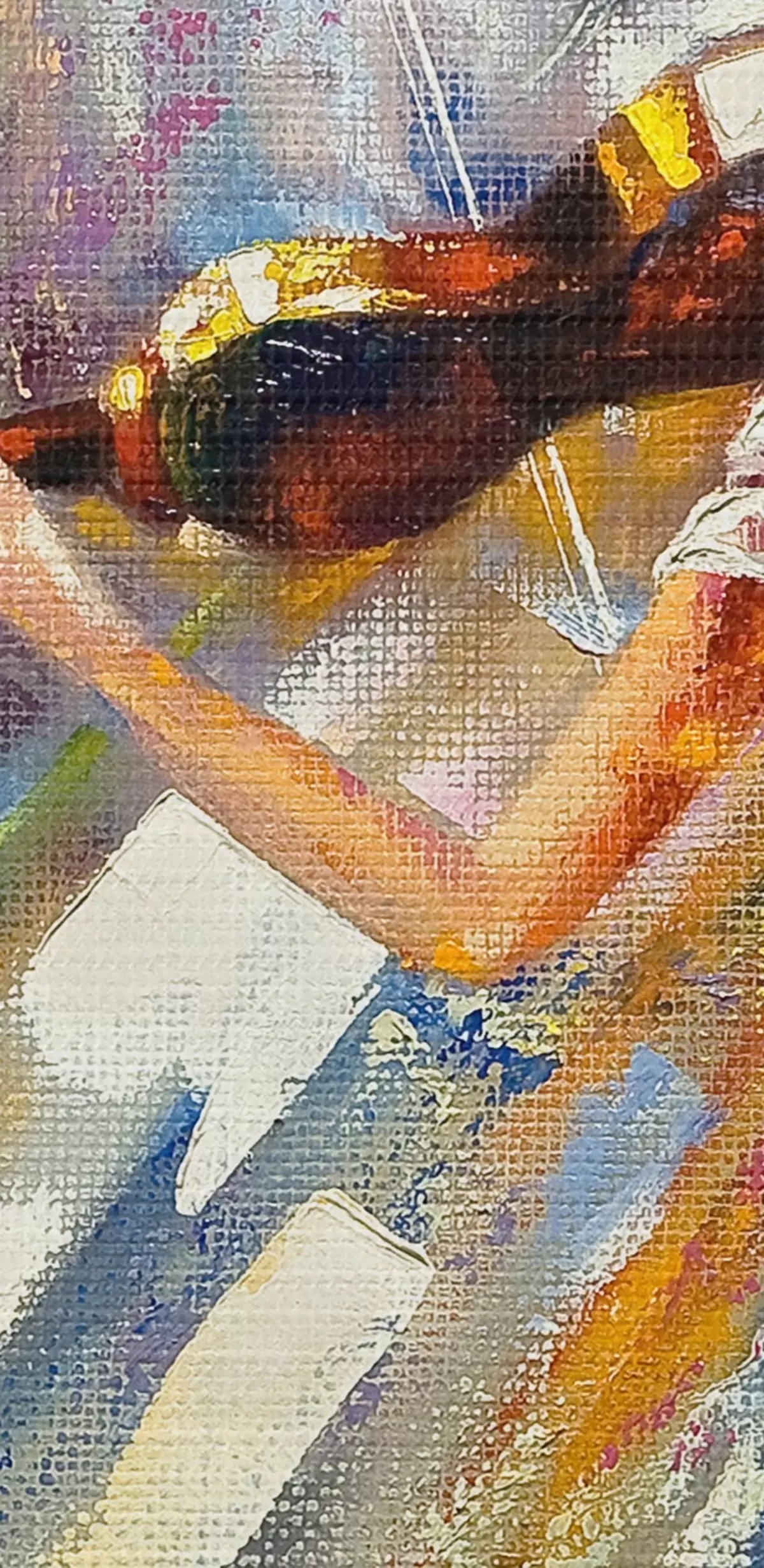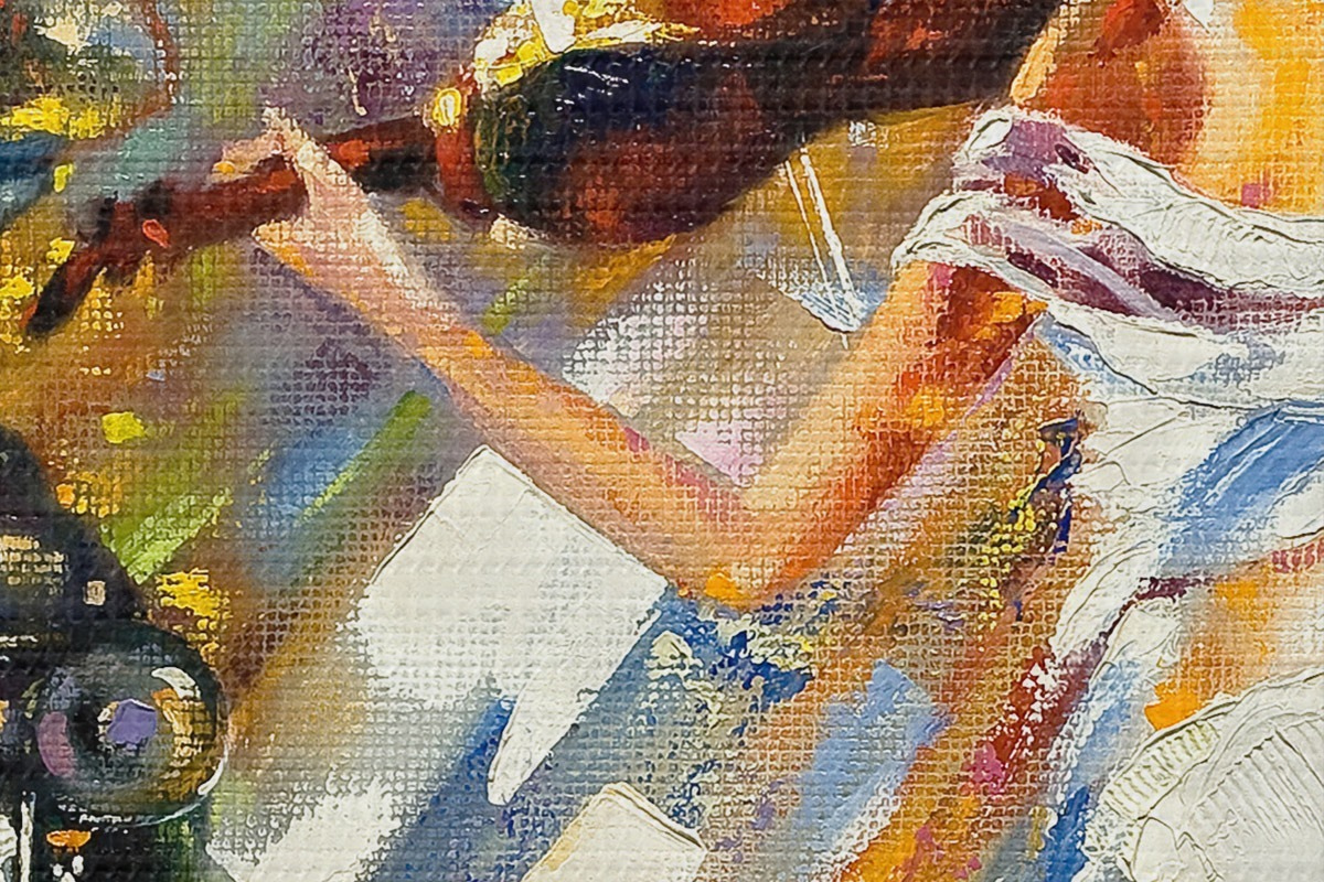 Țesătura fină a firelor de pe această pânză seamănă cu suprafața pânzelor artiștilor profesioniști.