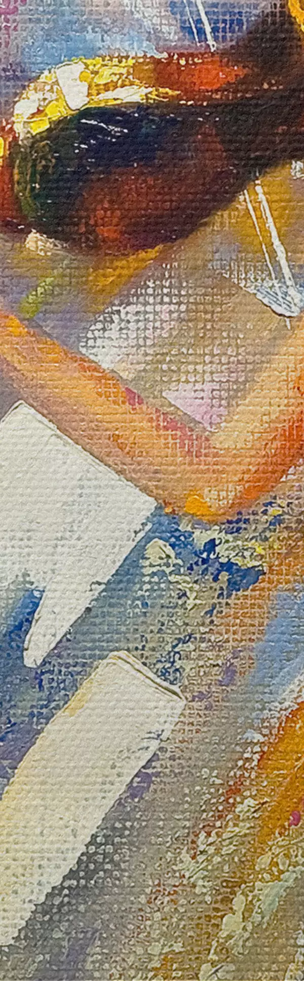 Trei tipuri de materiale sunt disponibile pentru comandă: Economic Canvas - un material dens și durabil pentru imprimarea digitală, identic cu pânza de pictor, suprafață impermeabilă, reproducere realistă a detaliilor, material cu granulație medie. Premium Canvas - textura seamănă cu cea a pânzei unui pictor (fire mici împletite). Reproducere moale, detaliată a imaginii pe o suprafață mată. Eco-Premium - țesătură 100% bumbac de înaltă calitate. Datorită fibrelor naturale de bumbac, materialul este durabil și rezistent la uzură. Reproducere excelentă a culorilor și a detaliilor.