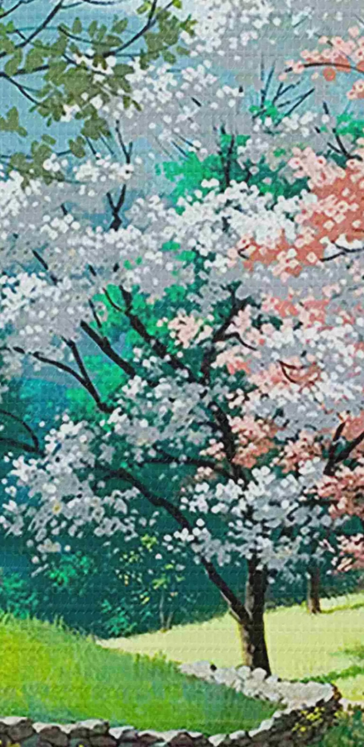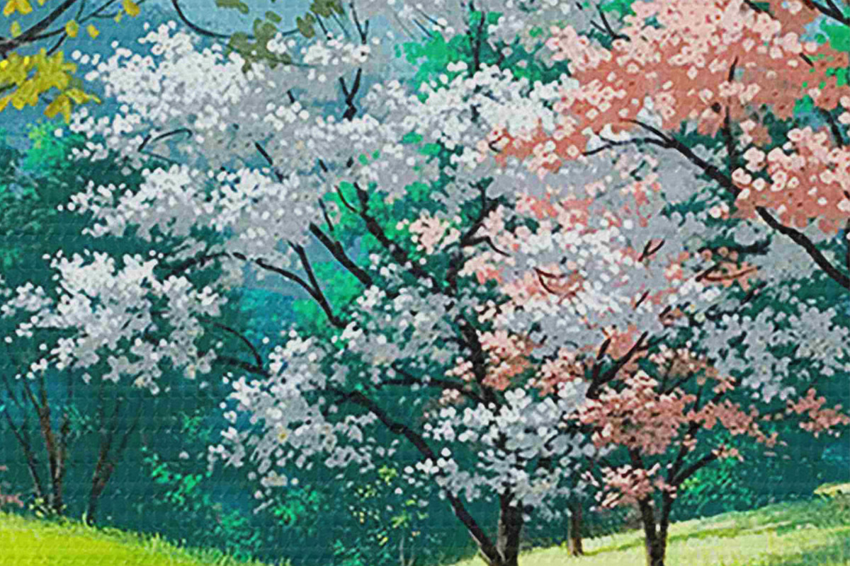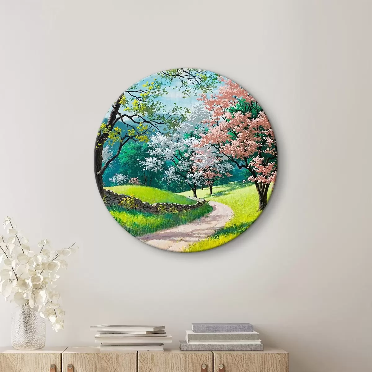 Picturi rotunde Pomi fructiferi înfloriți, drum de țară Nr r15350