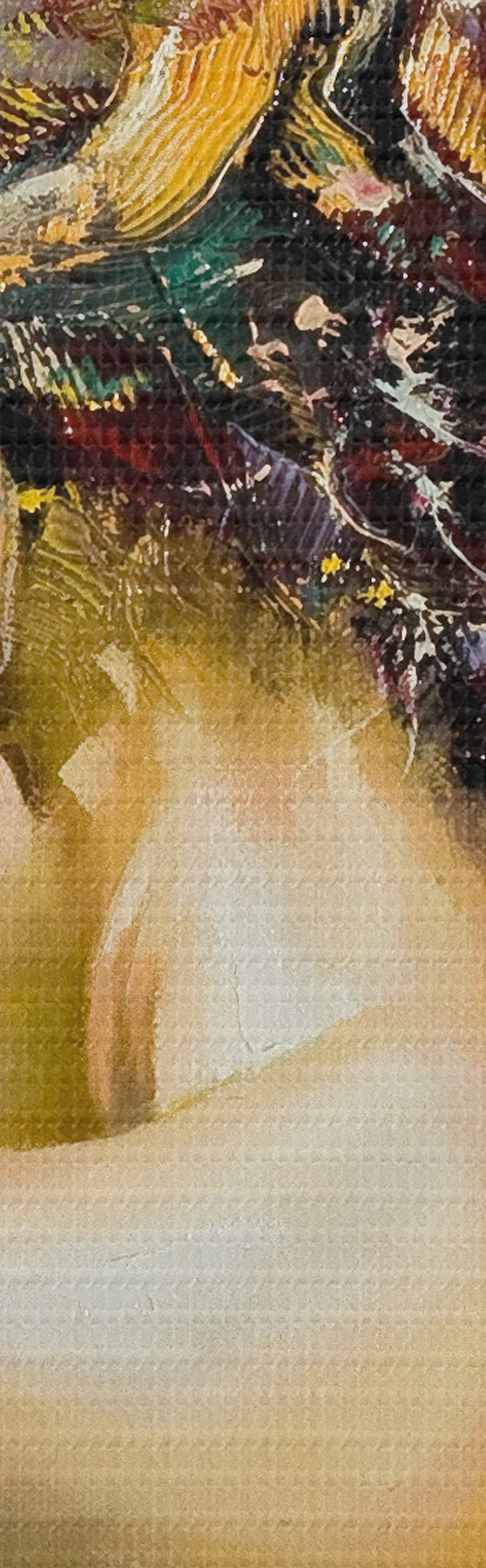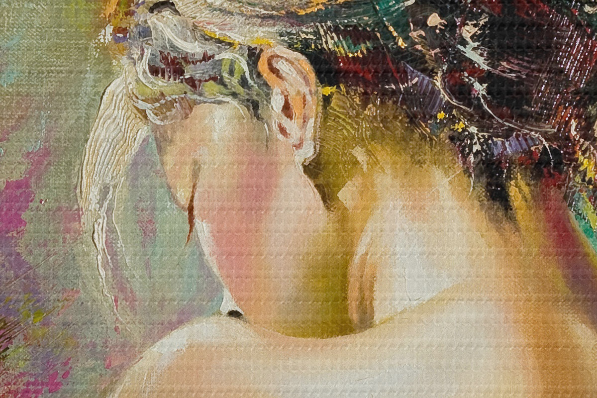 Țesătura fină a firelor de pe această pânză seamănă cu suprafața pânzelor artiștilor profesioniști.