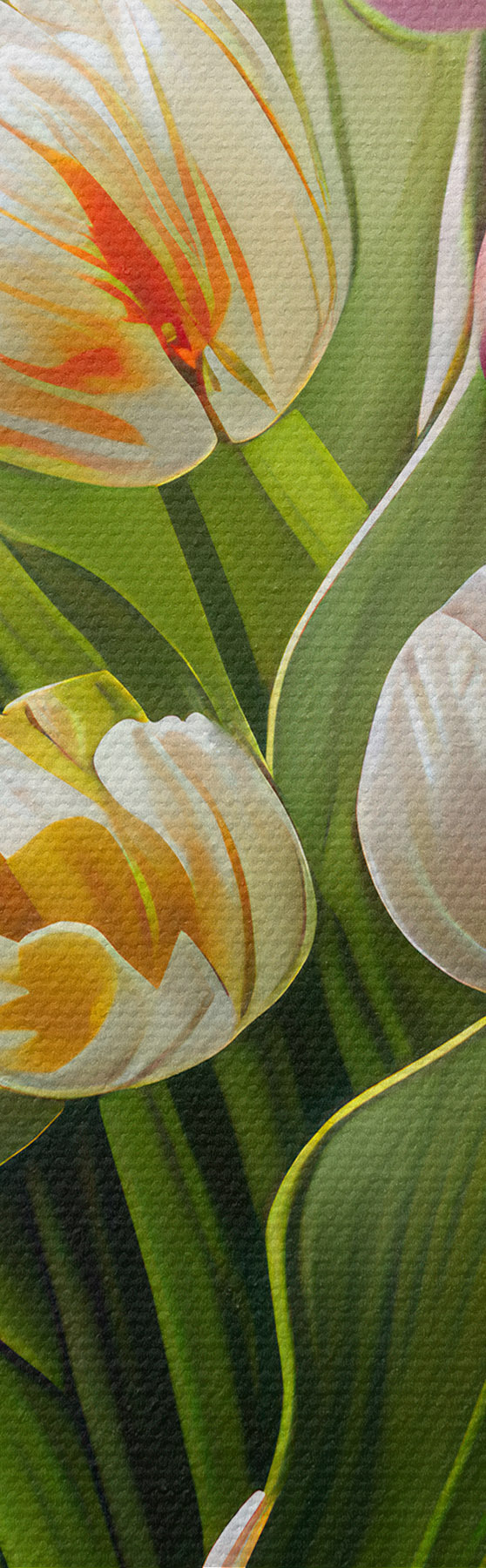 Trei tipuri de materiale sunt disponibile pentru comandă: Economic Canvas - un material dens și durabil pentru imprimarea digitală, identic cu pânza de pictor, suprafață impermeabilă, reproducere realistă a detaliilor, material cu granulație medie. Premium Canvas - textura seamănă cu cea a pânzei unui pictor (fire mici împletite). Reproducere moale, detaliată a imaginii pe o suprafață mată. Eco-Premium - țesătură 100% bumbac de înaltă calitate. Datorită fibrelor naturale de bumbac, materialul este durabil și rezistent la uzură. Reproducere excelentă a culorilor și a detaliilor.