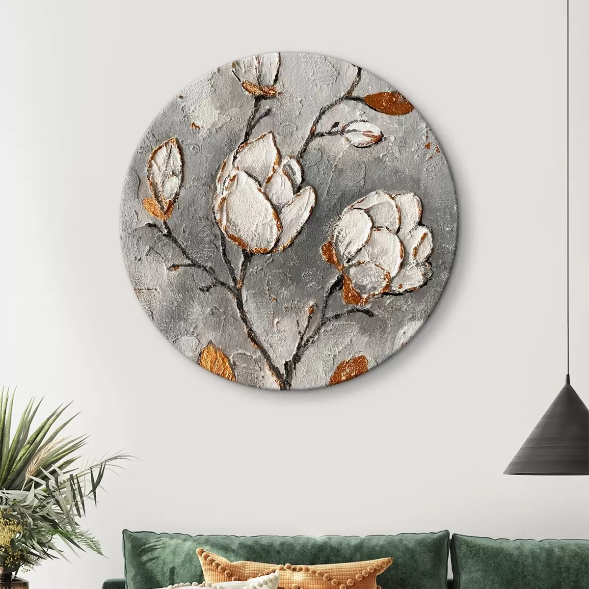 Picturi rotunde Flori de magnolie, pictură în pensulă cu detalii Nr r32513