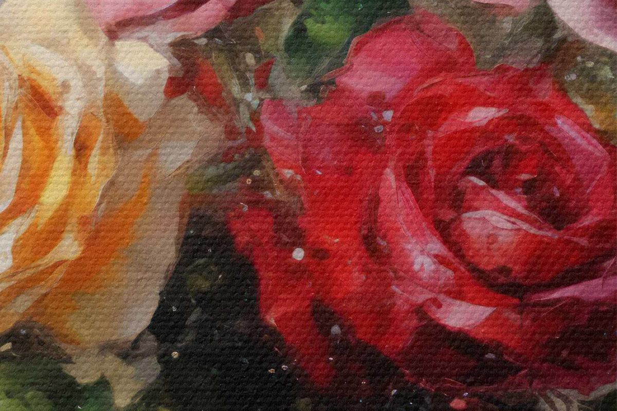 Trei tipuri de materiale sunt disponibile pentru comandă: Economic Canvas - un material dens și durabil pentru imprimarea digitală, identic cu pânza de pictor, suprafață impermeabilă, reproducere realistă a detaliilor, material cu granulație medie. Premium Canvas - textura seamănă cu cea a pânzei unui pictor (fire mici împletite). Reproducere moale, detaliată a imaginii pe o suprafață mată. Eco-Premium - țesătură 100% bumbac de înaltă calitate. Datorită fibrelor naturale de bumbac, materialul este durabil și rezistent la uzură. Reproducere excelentă a culorilor și a detaliilor.
