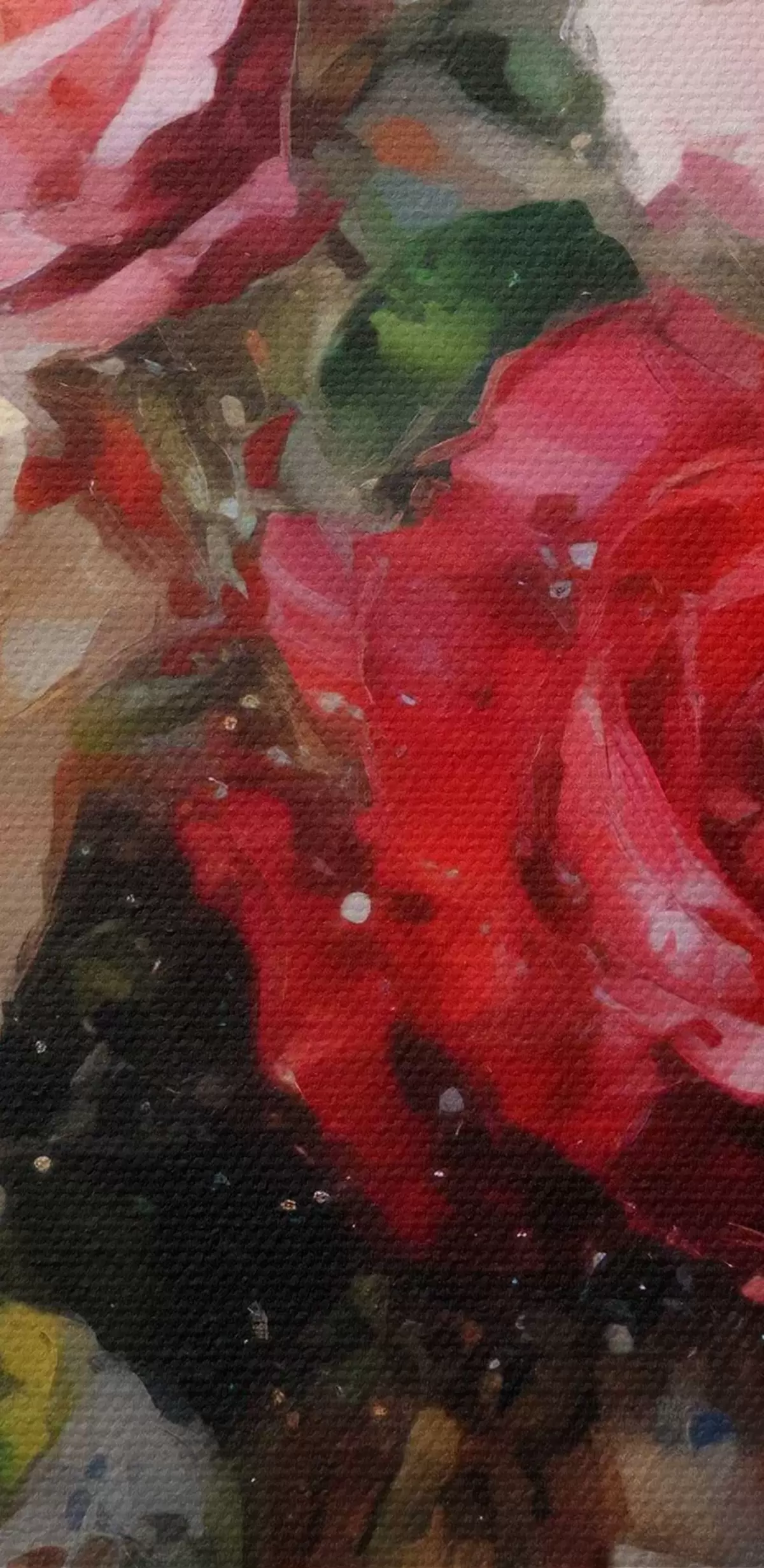 Țesătura fină a firelor de pe această pânză seamănă cu suprafața pânzelor artiștilor profesioniști.