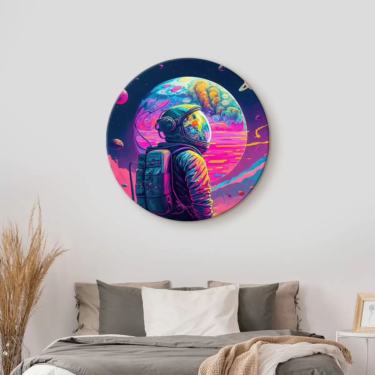 Picturi rotunde Ilustrație a peisajului viitor cu munți, planete, lună Nr r33058