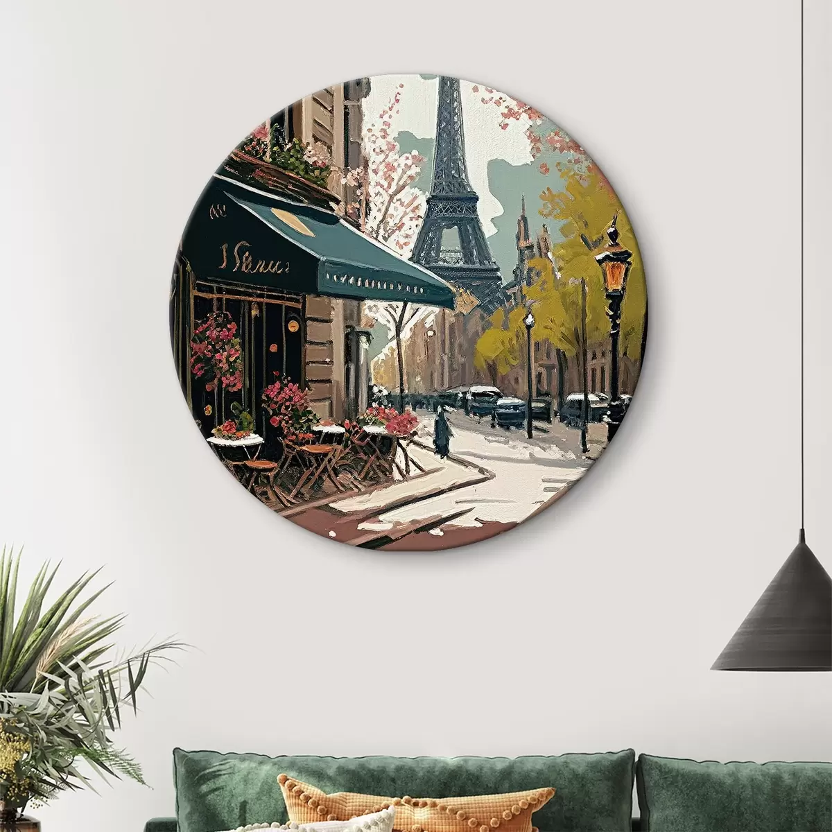 Picturi rotunde Cafenea în Paris în stil desenat manual r33523