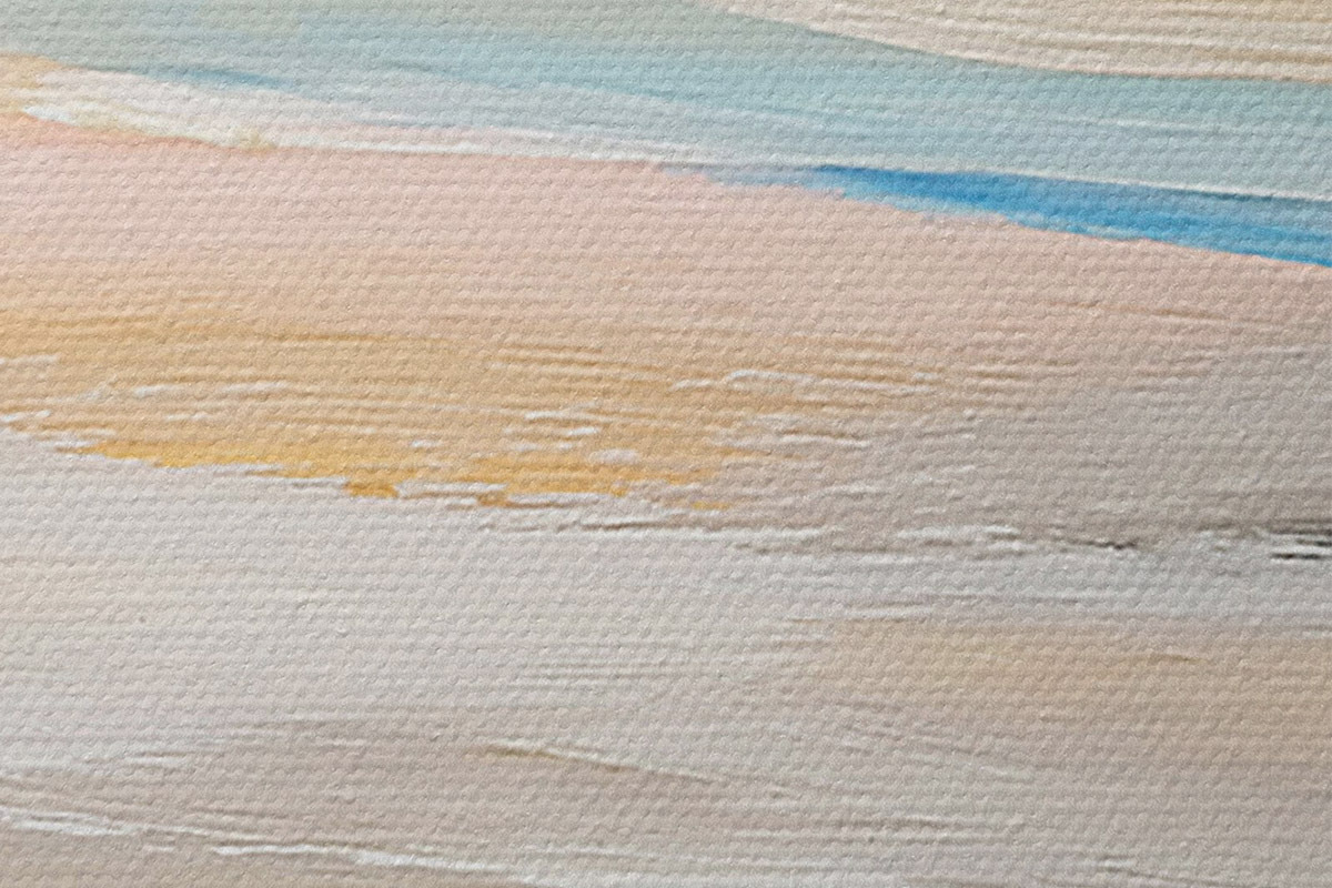 Țesătura fină a firelor de pe această pânză seamănă cu suprafața pânzelor artiștilor profesioniști.