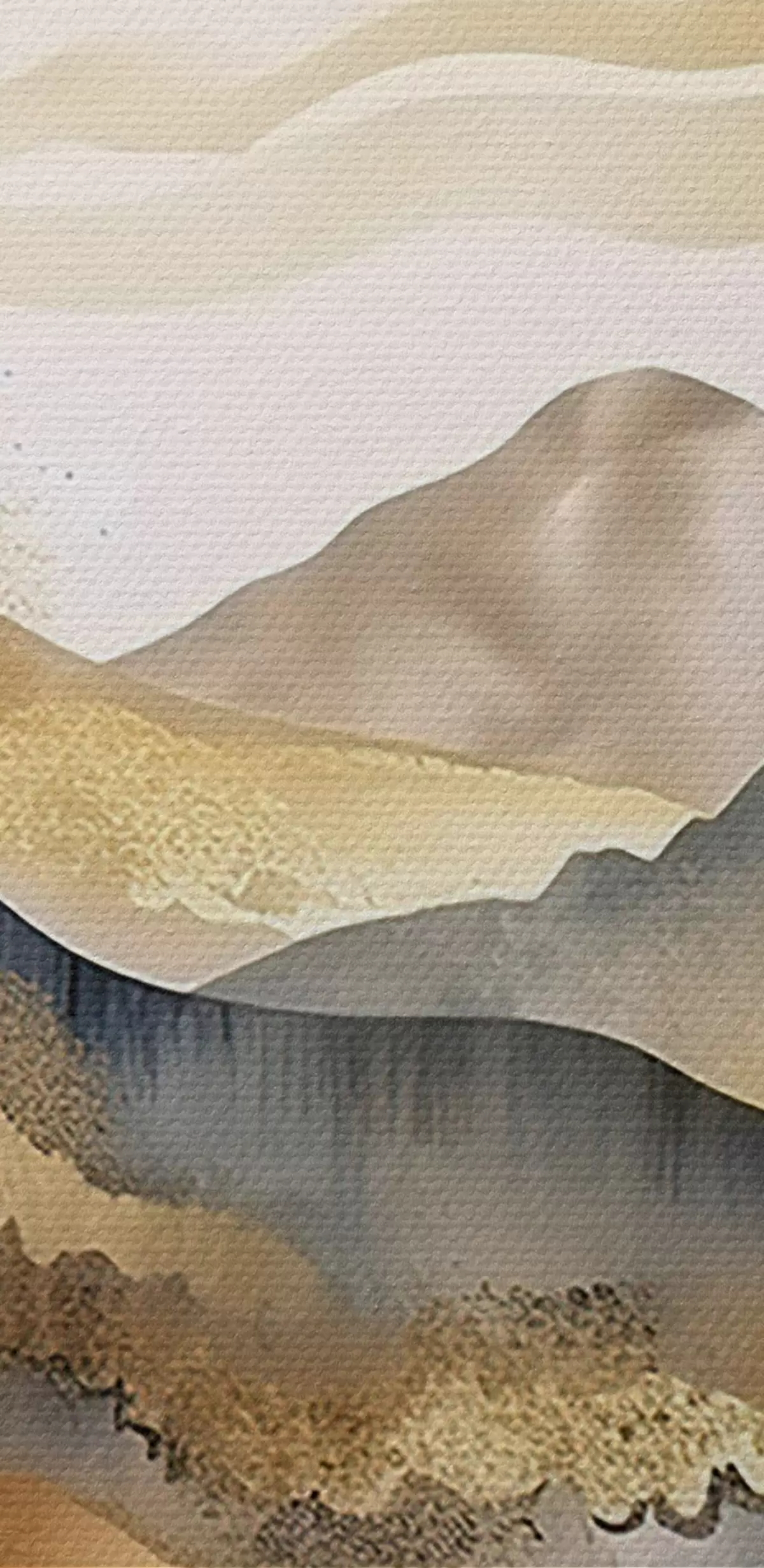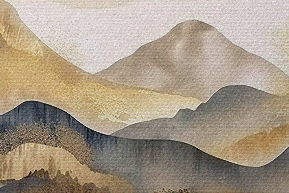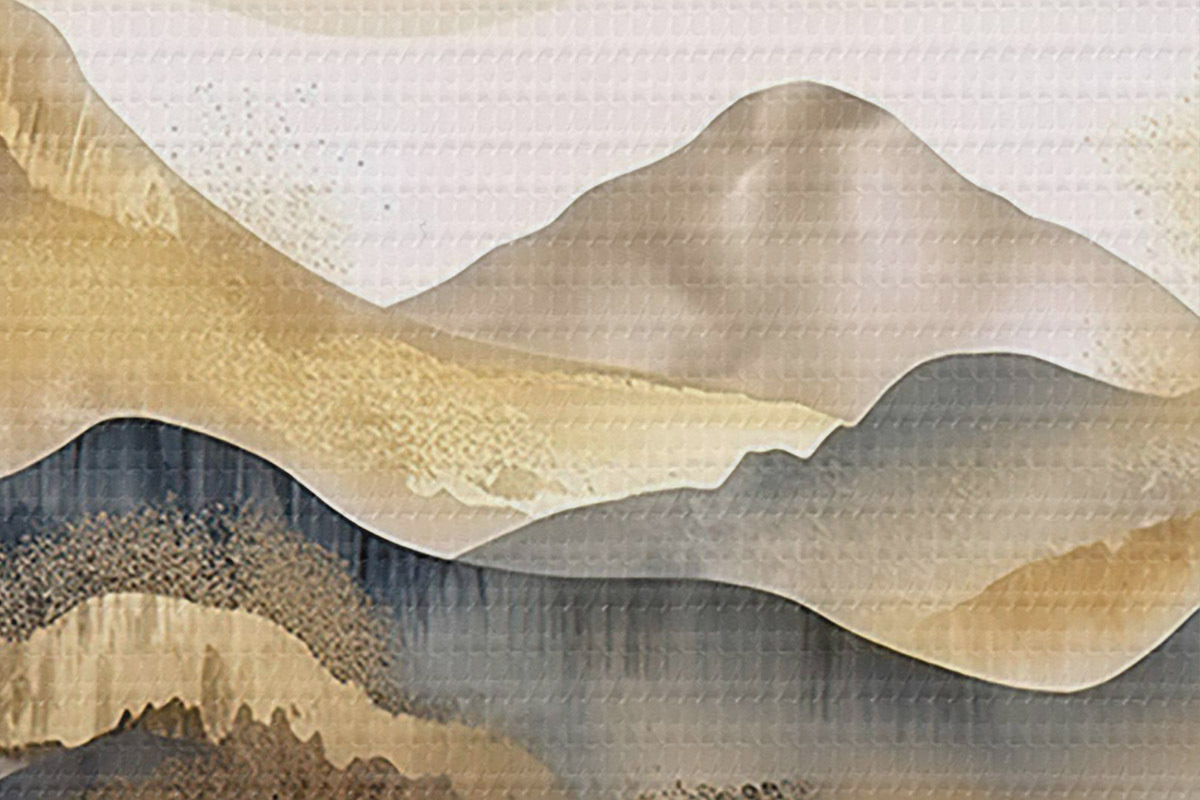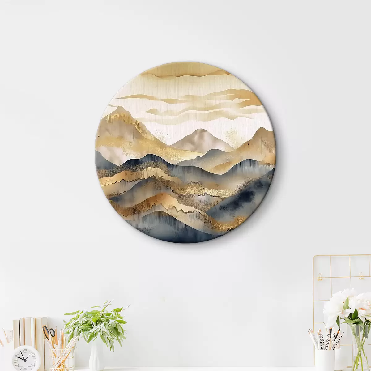 Picturi rotunde Fundal abstract cu munți în bej și gri, cu elemente pe fundal alb Nr r34462