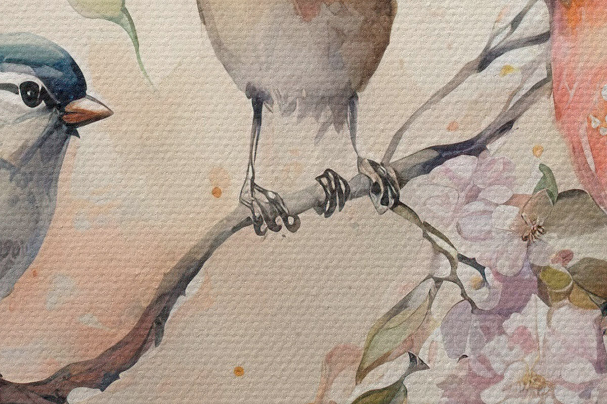 Picturi rotunde Pasăre, cioc și ramură r34490