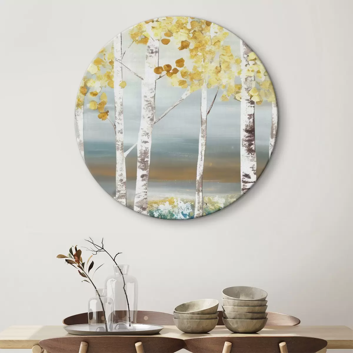 Picturi rotunde Pictură în ulei cu mesteceni pe fundalul vremii ploioase Nr r34602