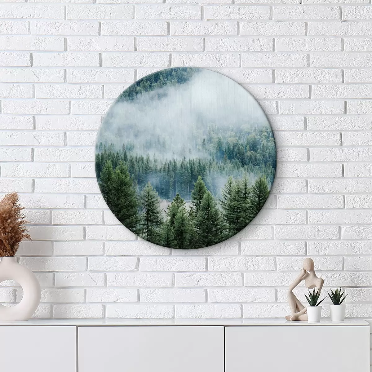 Picturi rotunde Pădure de conifere în ceață Nr r34825