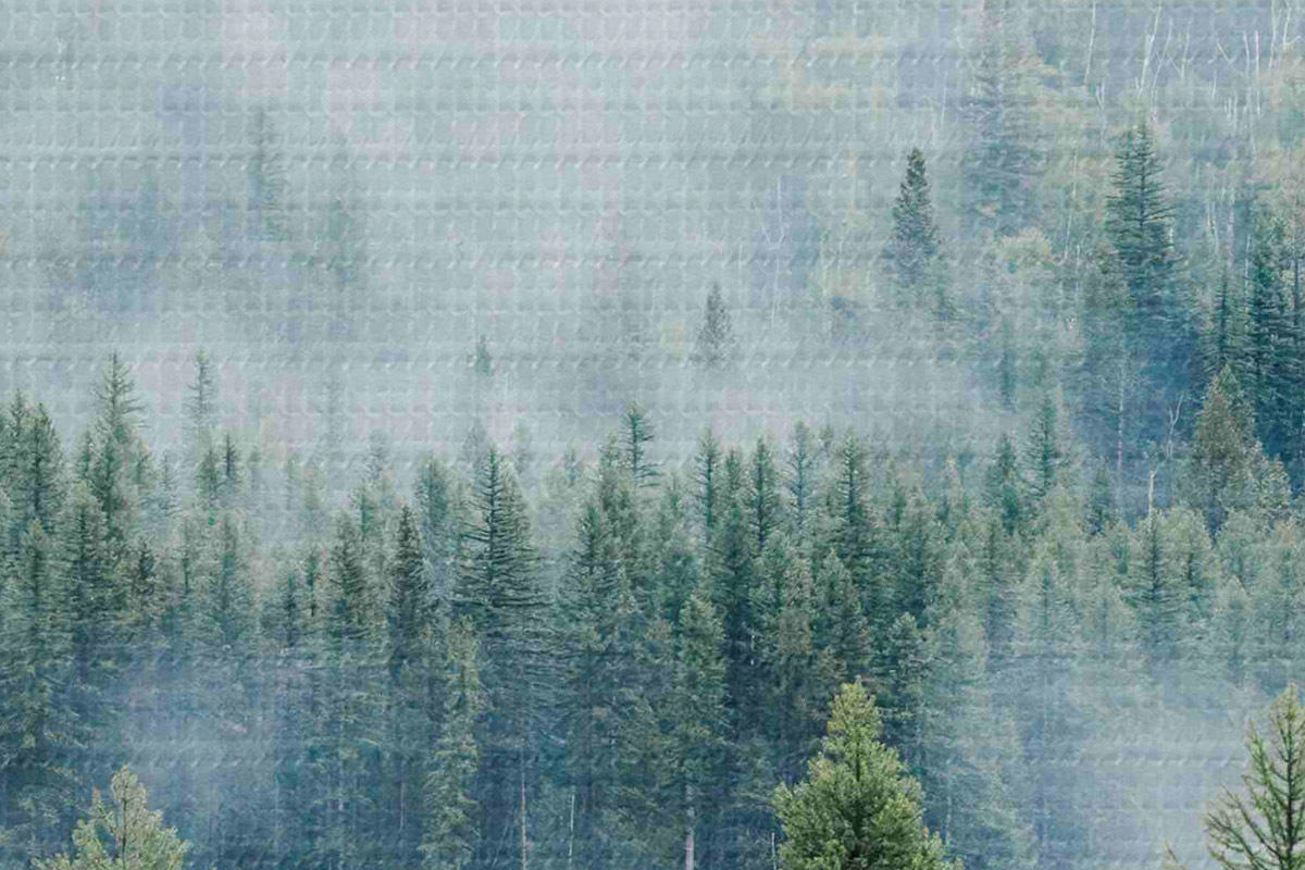 Picturi rotunde Pădure de conifere în ceață r34825