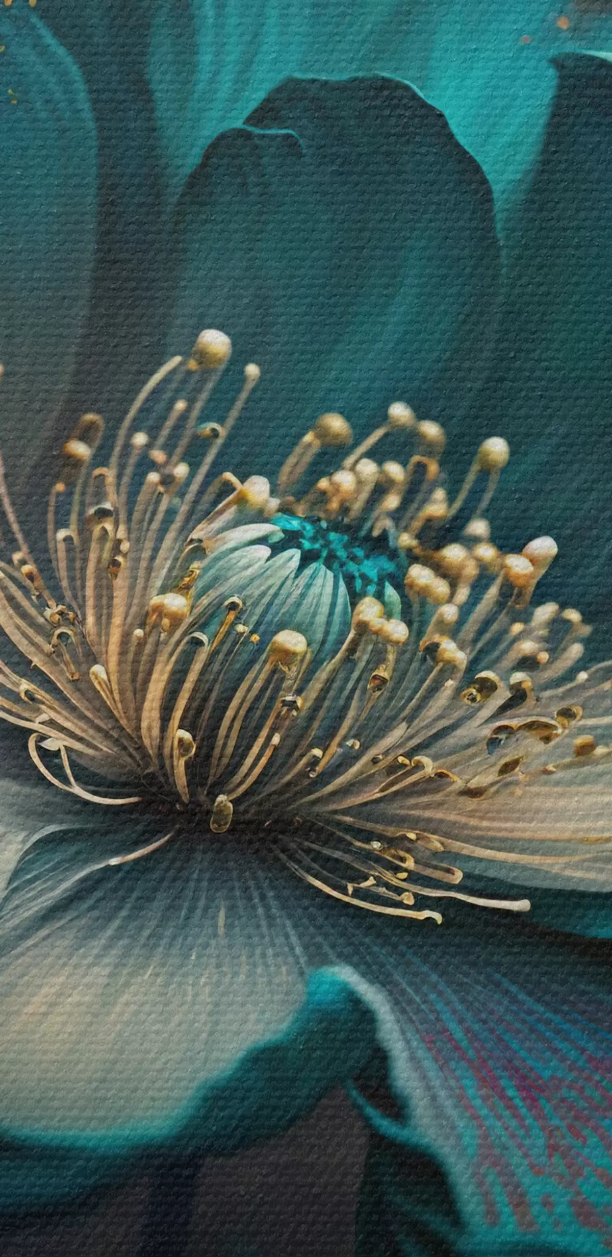 Țesătura fină a firelor de pe această pânză seamănă cu suprafața pânzelor artiștilor profesioniști.