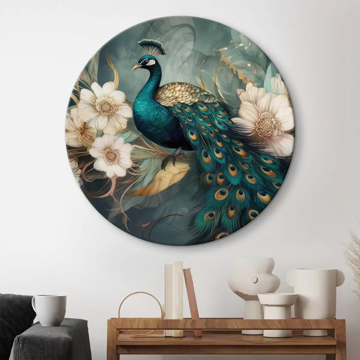 Picturi rotunde Un păun frumos pe o ramură înflorită r34866