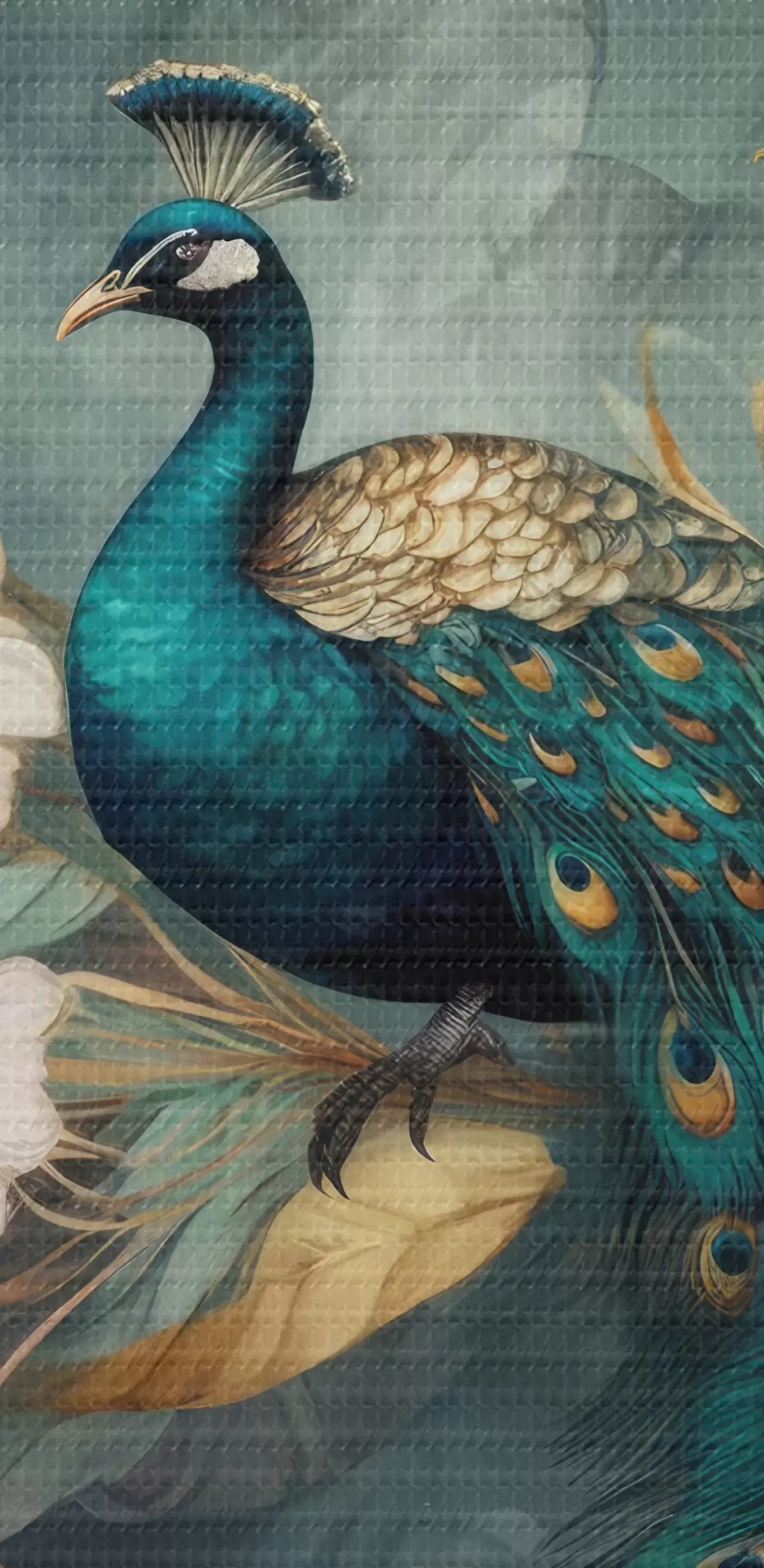 Picturi rotunde Un păun frumos pe o ramură înflorită Nr r34866