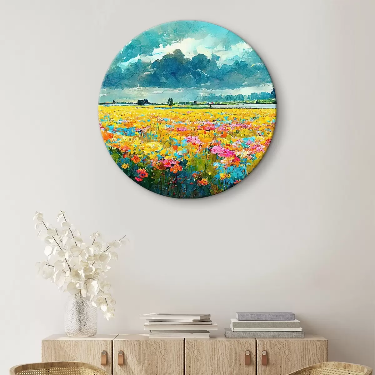 Picturi rotunde Flori sălbatice pe fundalul munților Nr r34944