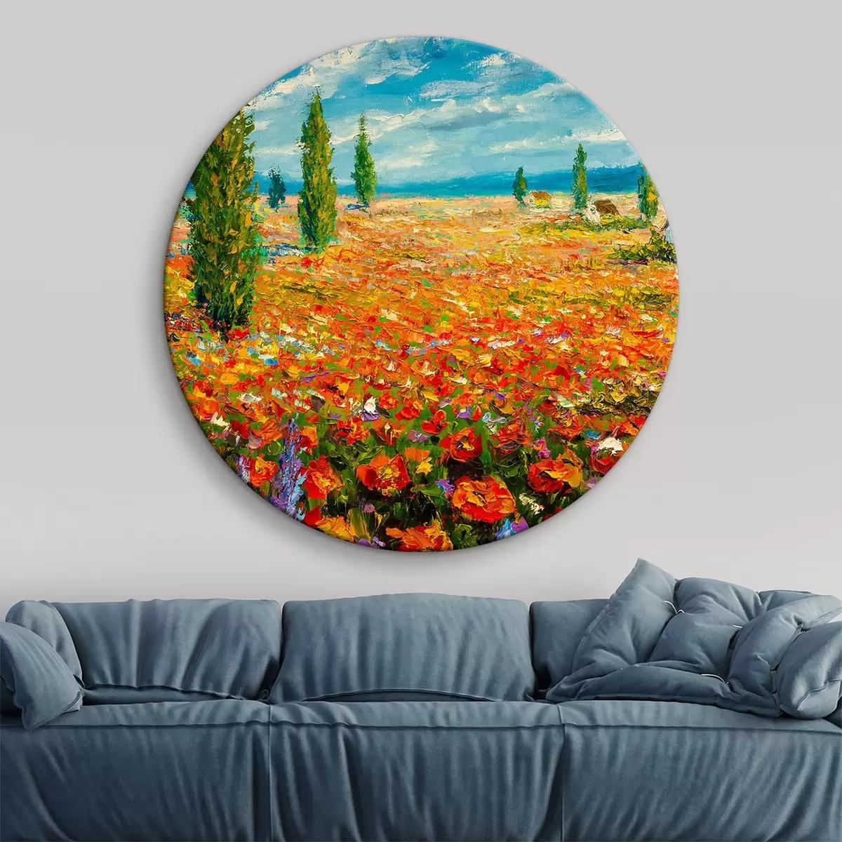 Picturi rotunde Câmpul de maci pe cerul albastru Nr r34956