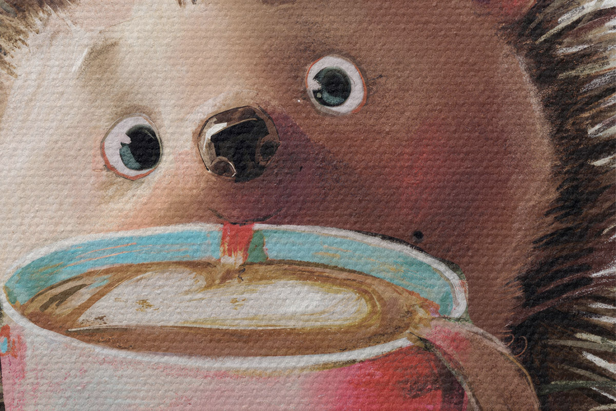 Picturi rotunde Ariciul și o ceașcă de cafea r35039