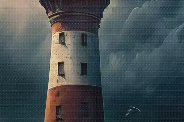 Picturi rotunde Far pitoresc pe o insulă singuratică în timpul unei furtuni r35349
