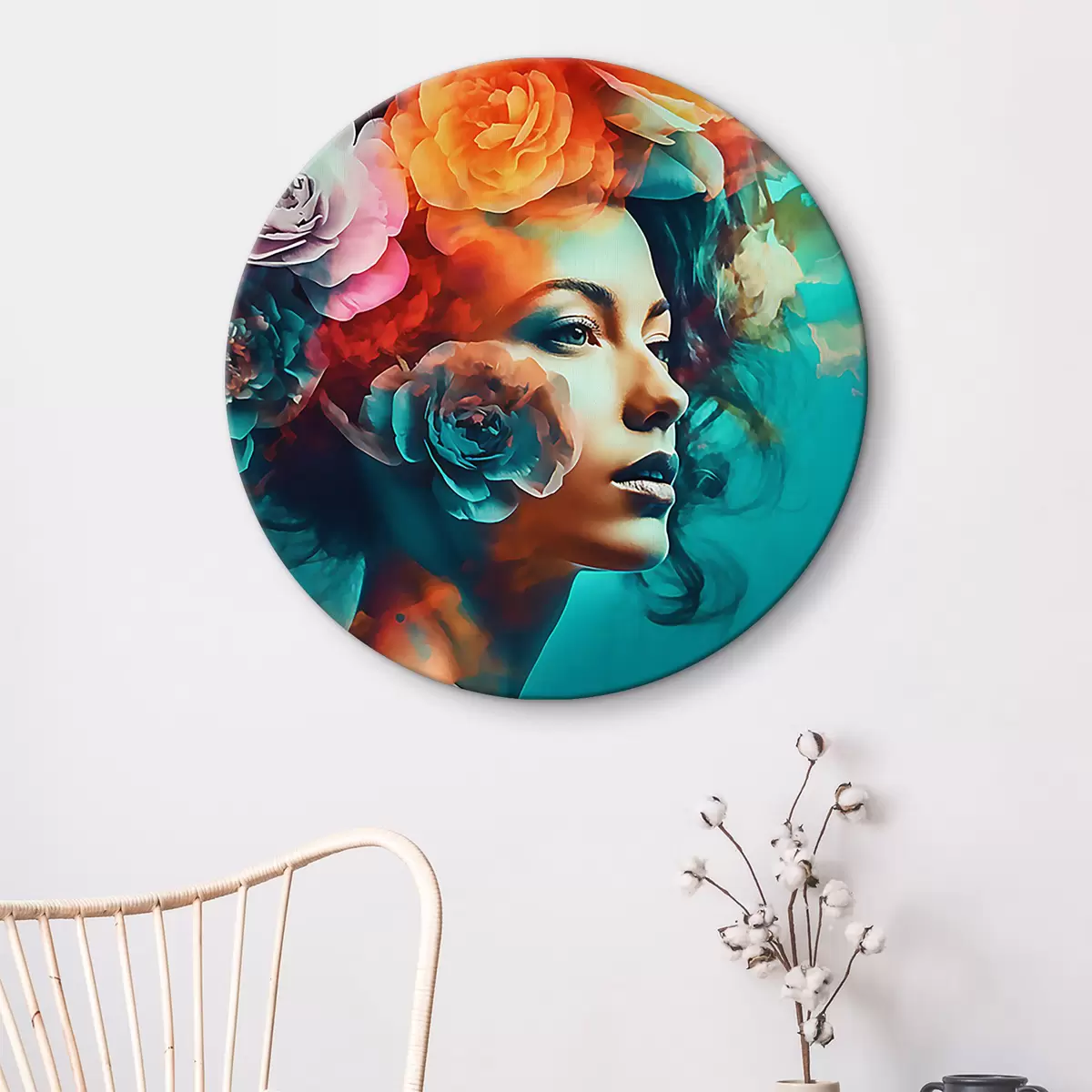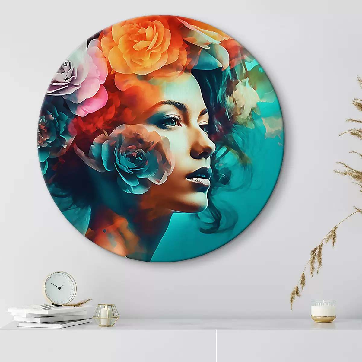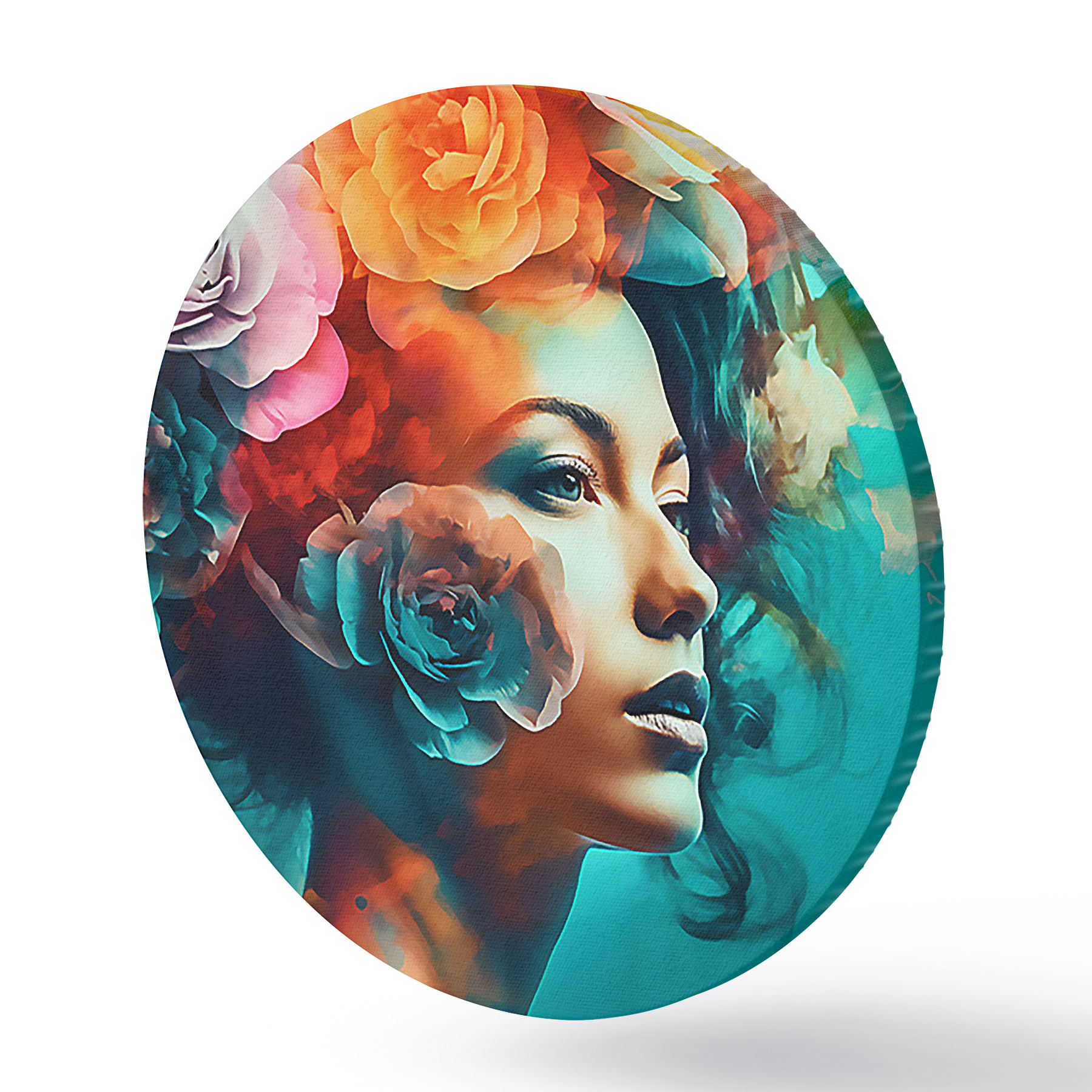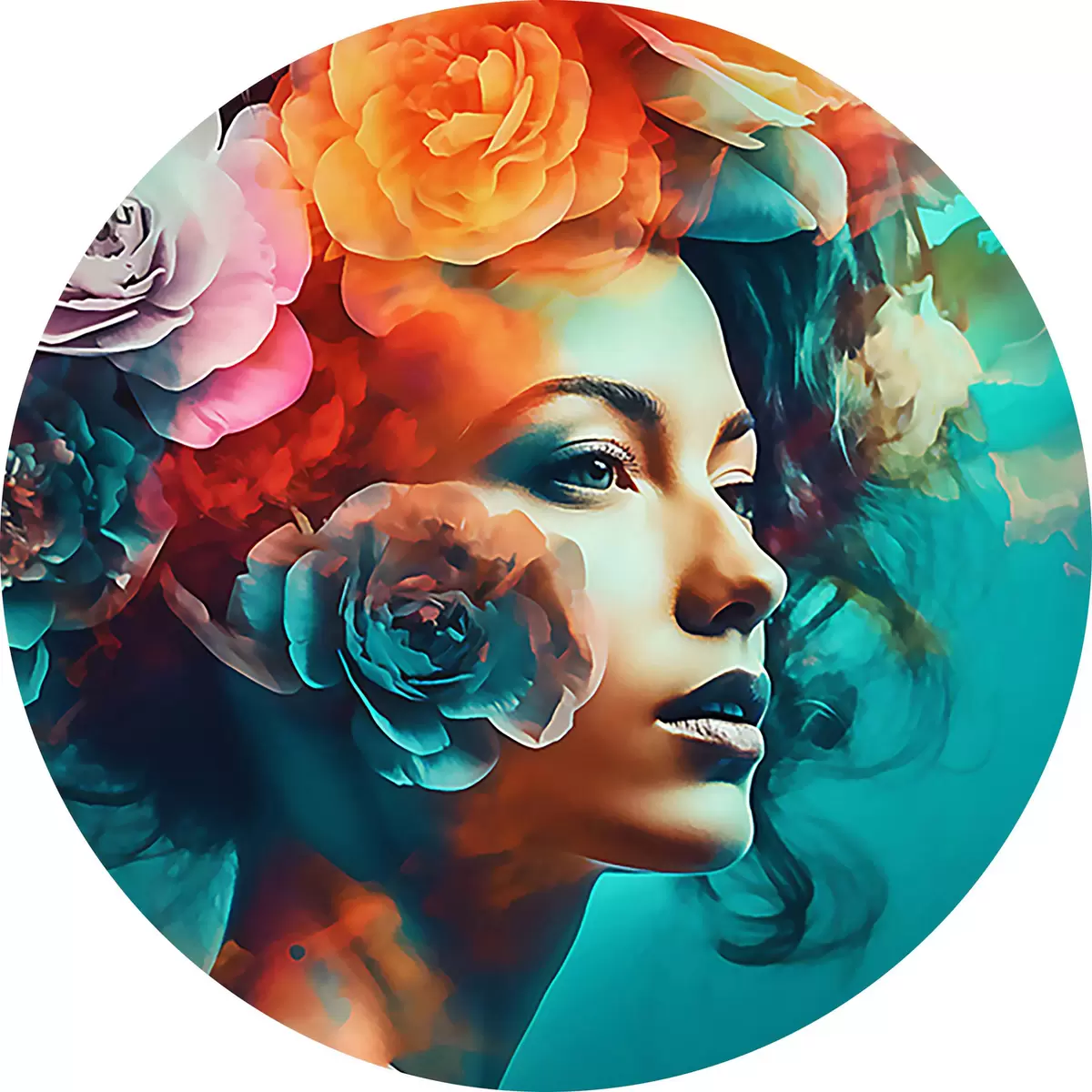 Picturi rotunde Femeie frumoasă cu flori Nr r35366