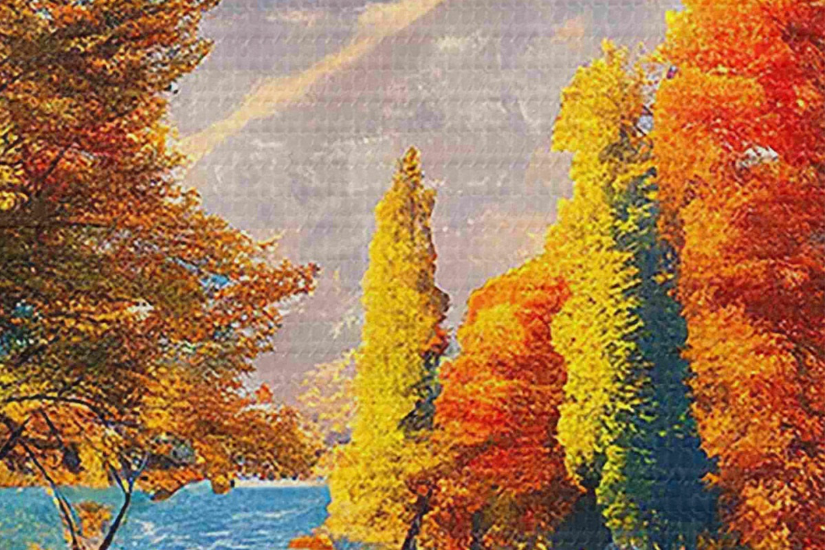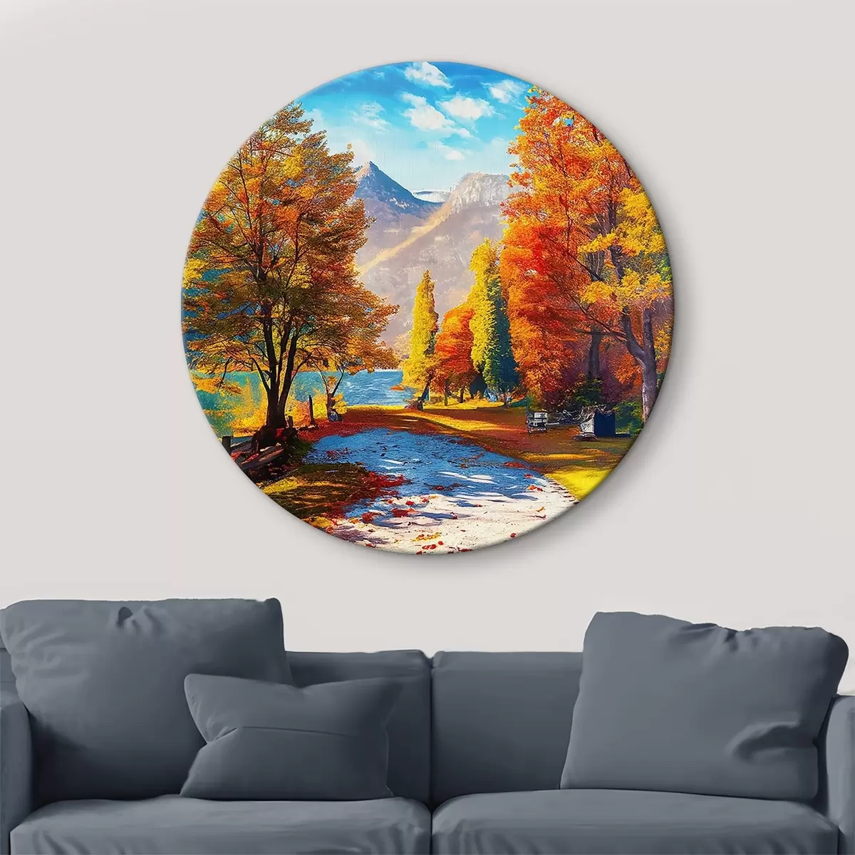 Picturi rotunde pădure de toamnă desenată manual Nr r35375