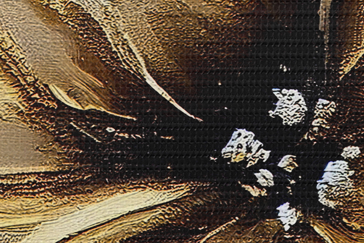 Țesătura fină a firelor de pe această pânză seamănă cu suprafața pânzelor artiștilor profesioniști.