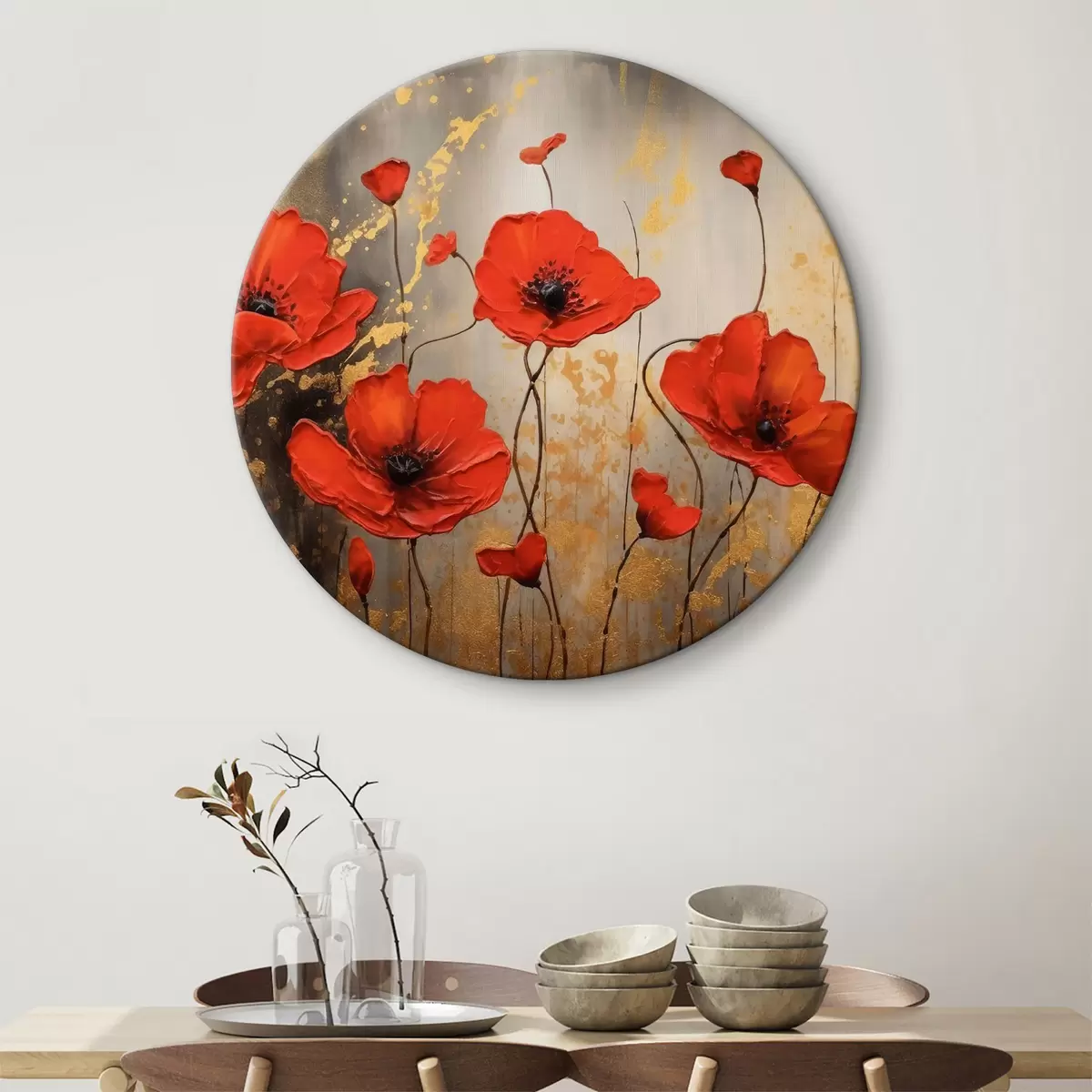 Picturi rotunde Poppies pe un fundal de abstractizare maro r35515
