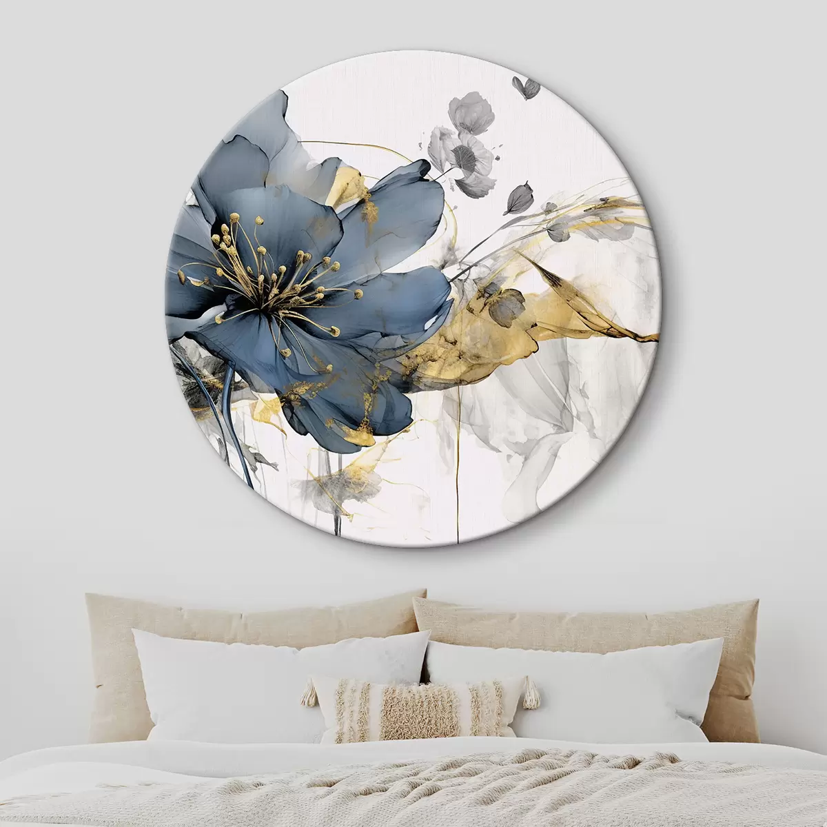Picturi rotunde Floare albastră translucidă delicată cu un strop de vopsea r35527