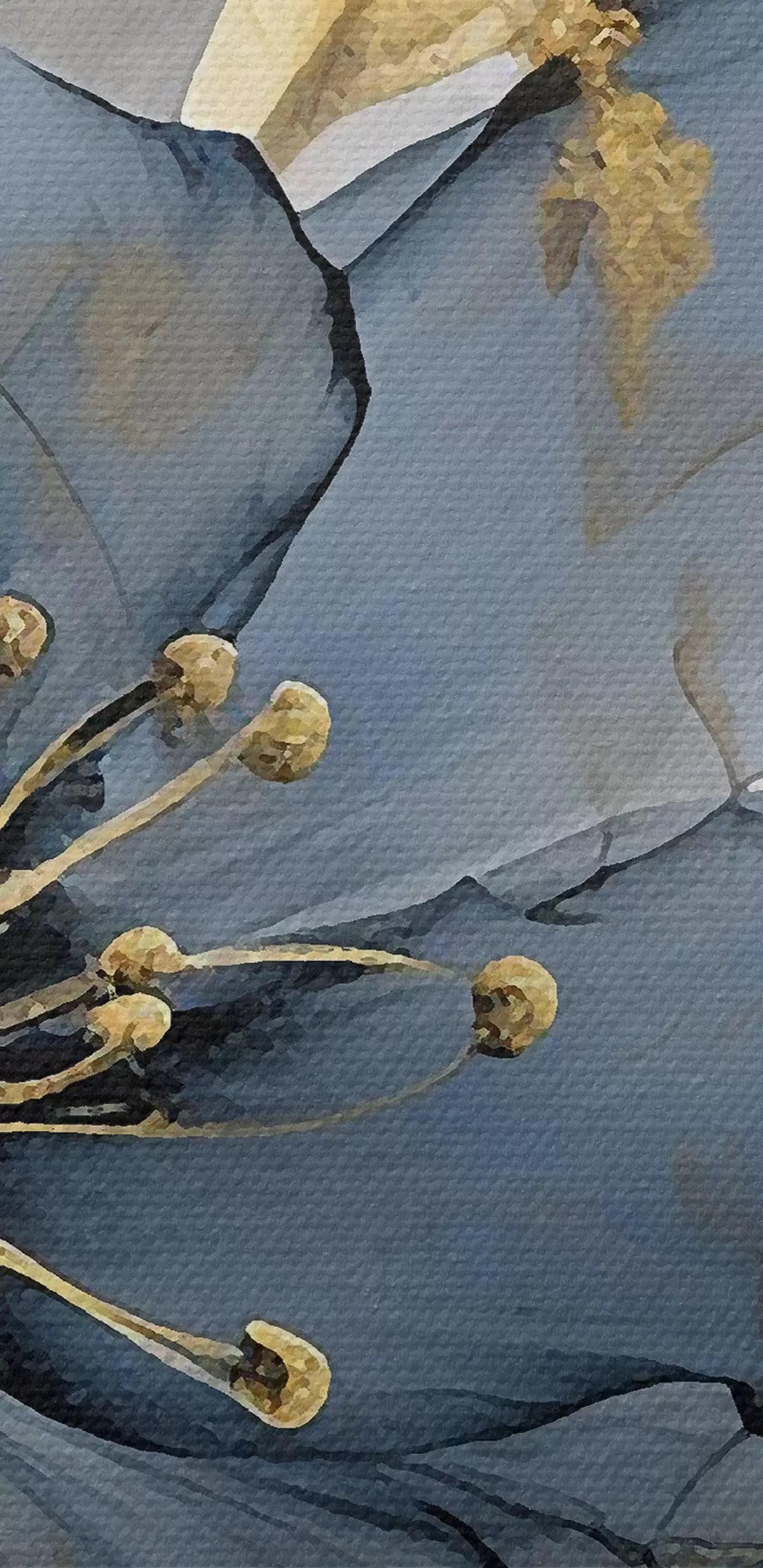 Picturi rotunde Floare albastră translucidă delicată cu un strop de vopsea Nr r35527
