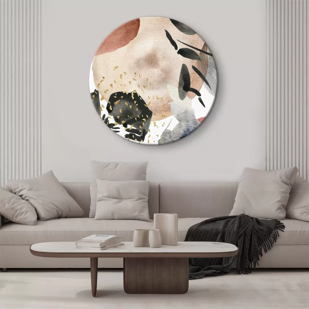 Picturi rotunde Poster abstract în acuarelă cu pete roșii, negre și bej r35937