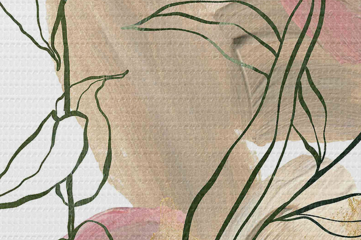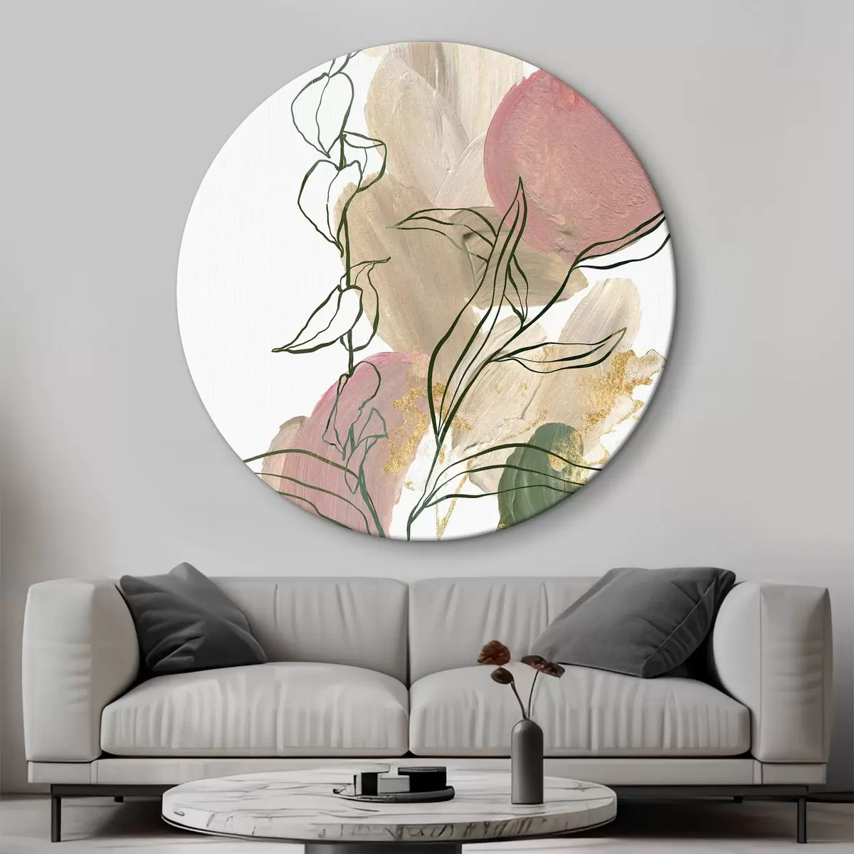 Picturi rotunde Compoziție de toamnă în acuarelă din ramuri liniare, pete roz și verzi Nr r35949