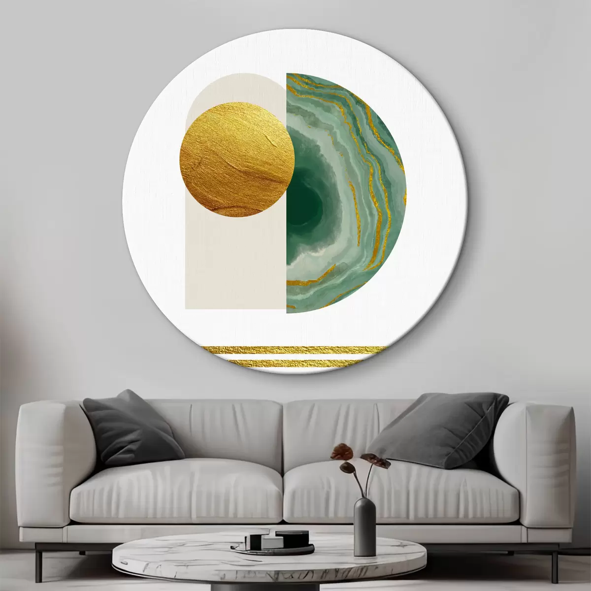 Picturi rotunde Forme abstracte cu accente verzi r35986