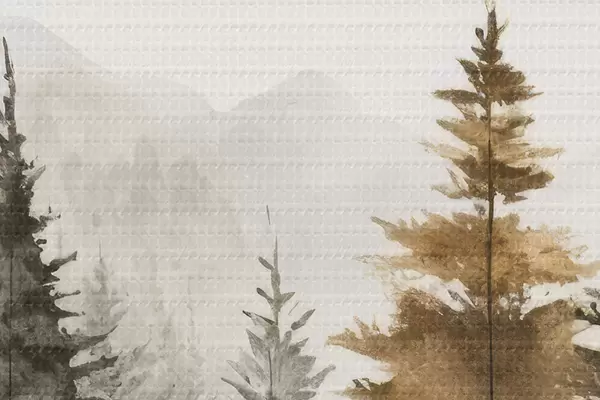 Picturi rotunde Watercolor brazi pe fundal de munți r36010