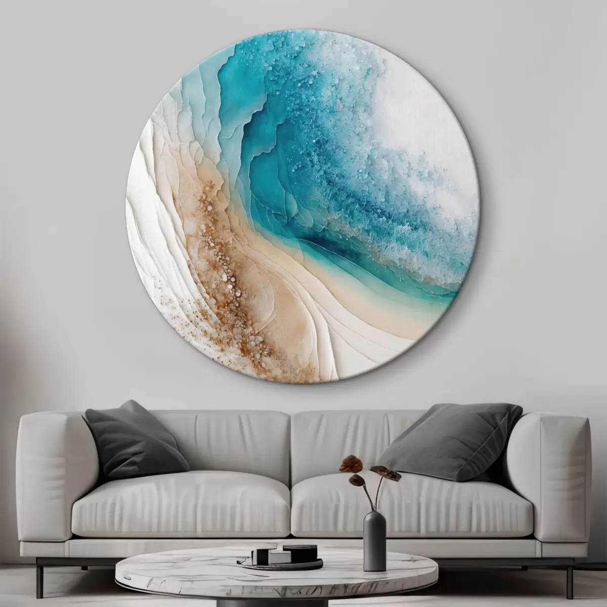 Picturi rotunde Turcoaz și alb fluid art Nr r36029