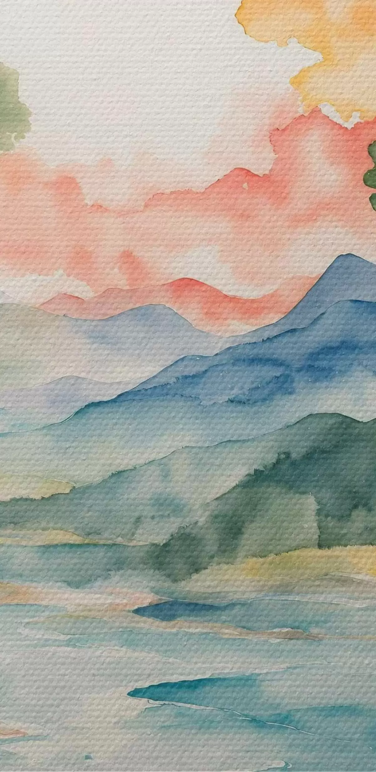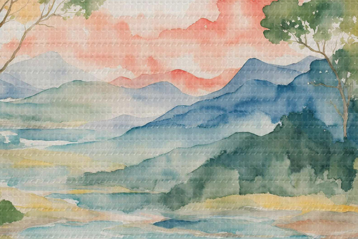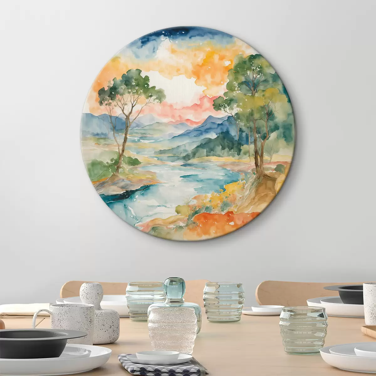 Picturi rotunde Râu și copaci în acuarelă Nr r36054