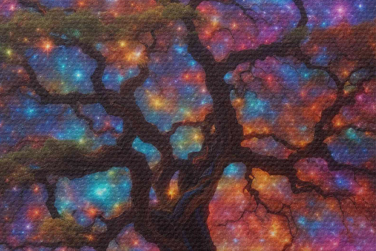 Picturi rotunde Un copac pe cerul înstelat Nr r36059