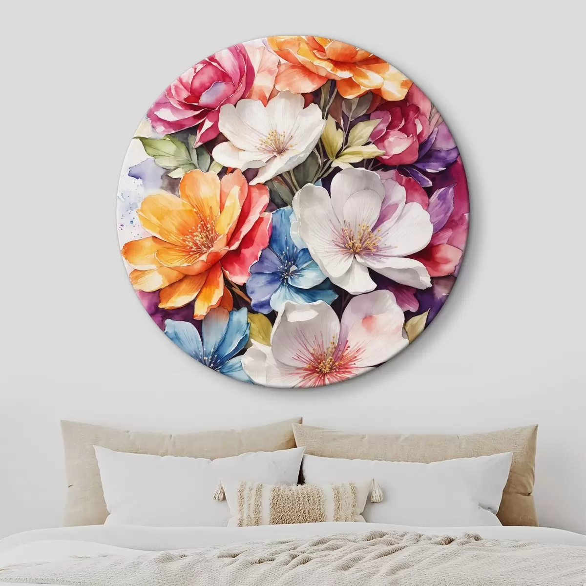 Picturi rotunde Model acuarelă în culorile alb, albastru și galben Nr r36123