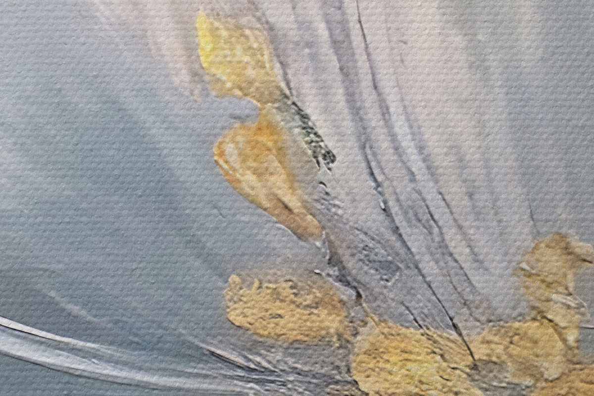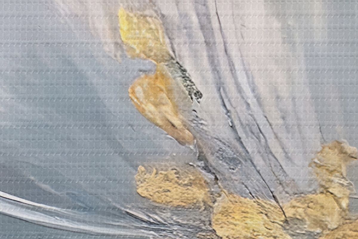 Țesătura fină a firelor de pe această pânză seamănă cu suprafața pânzelor artiștilor profesioniști.