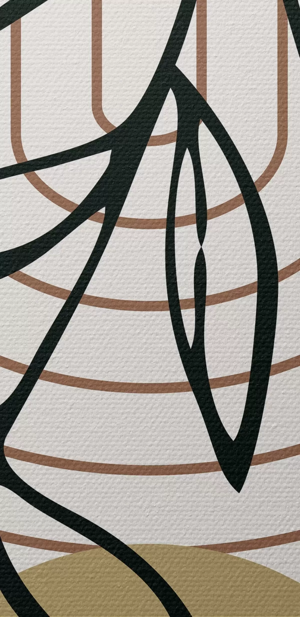 Picturi rotunde Semicercuri geometrice cu plantă abstractă suspendată și spirală r36188