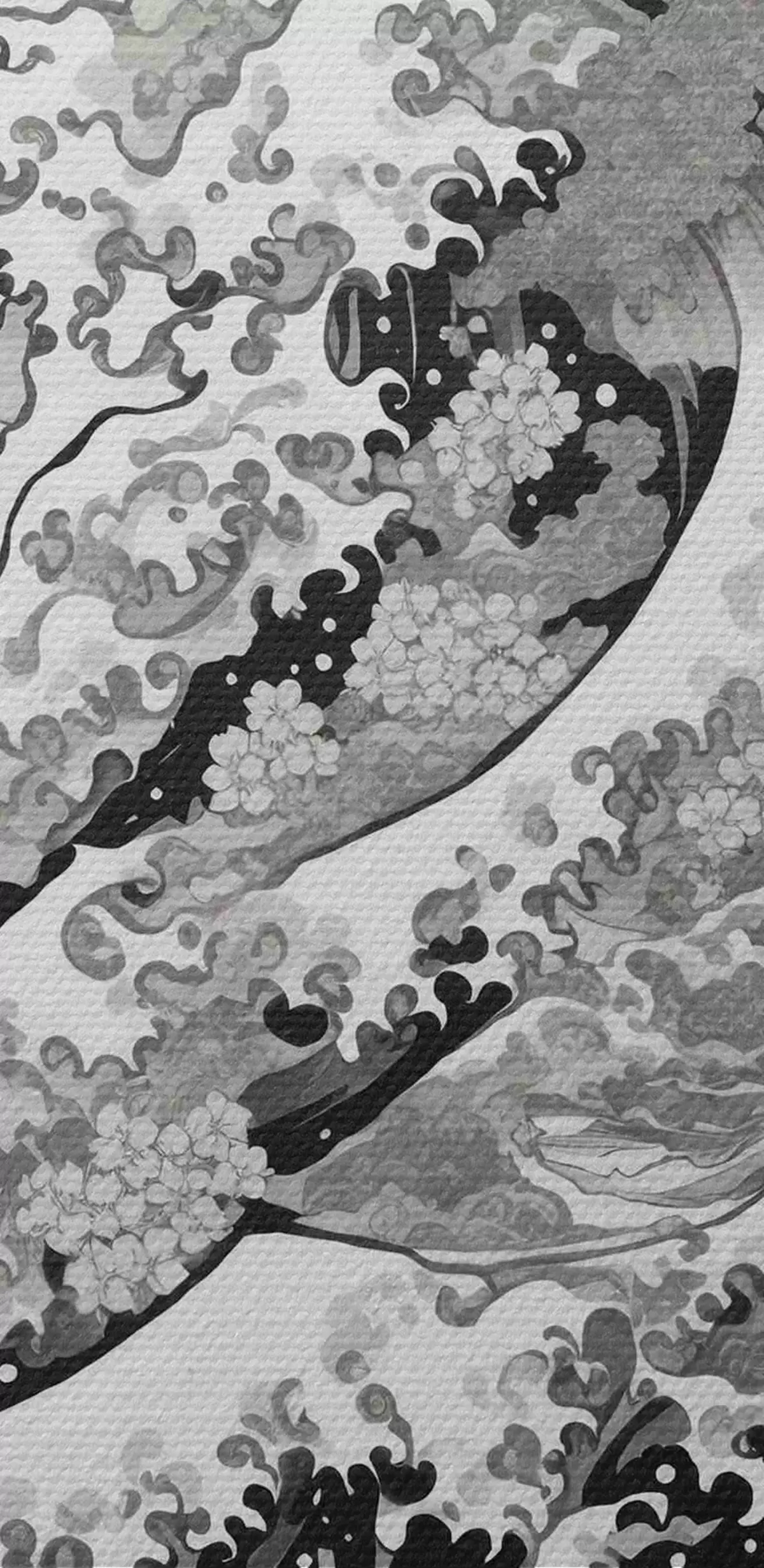 Picturi rotunde Tsunami în alb și negru Nr r36234