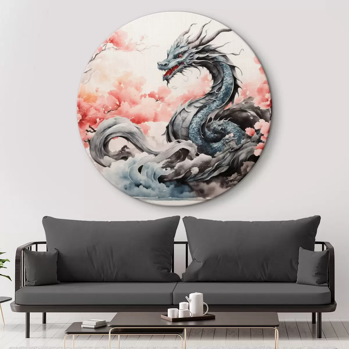 Picturi rotunde Dragon din mitologia chineză acuarelă Nr r36239