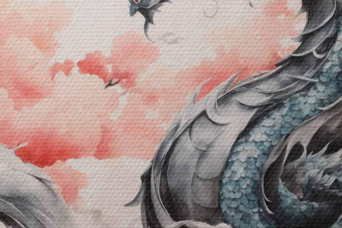 Picturi rotunde Dragon din mitologia chineză acuarelă r36239