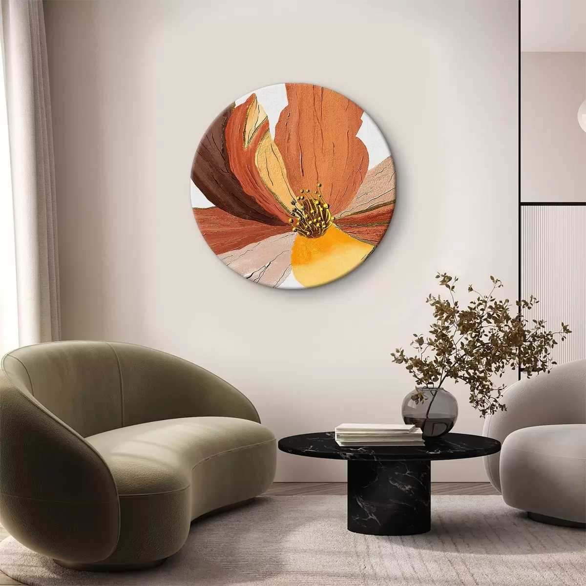 Picturi rotunde O pictură în ulei reprezentând o floare r36287