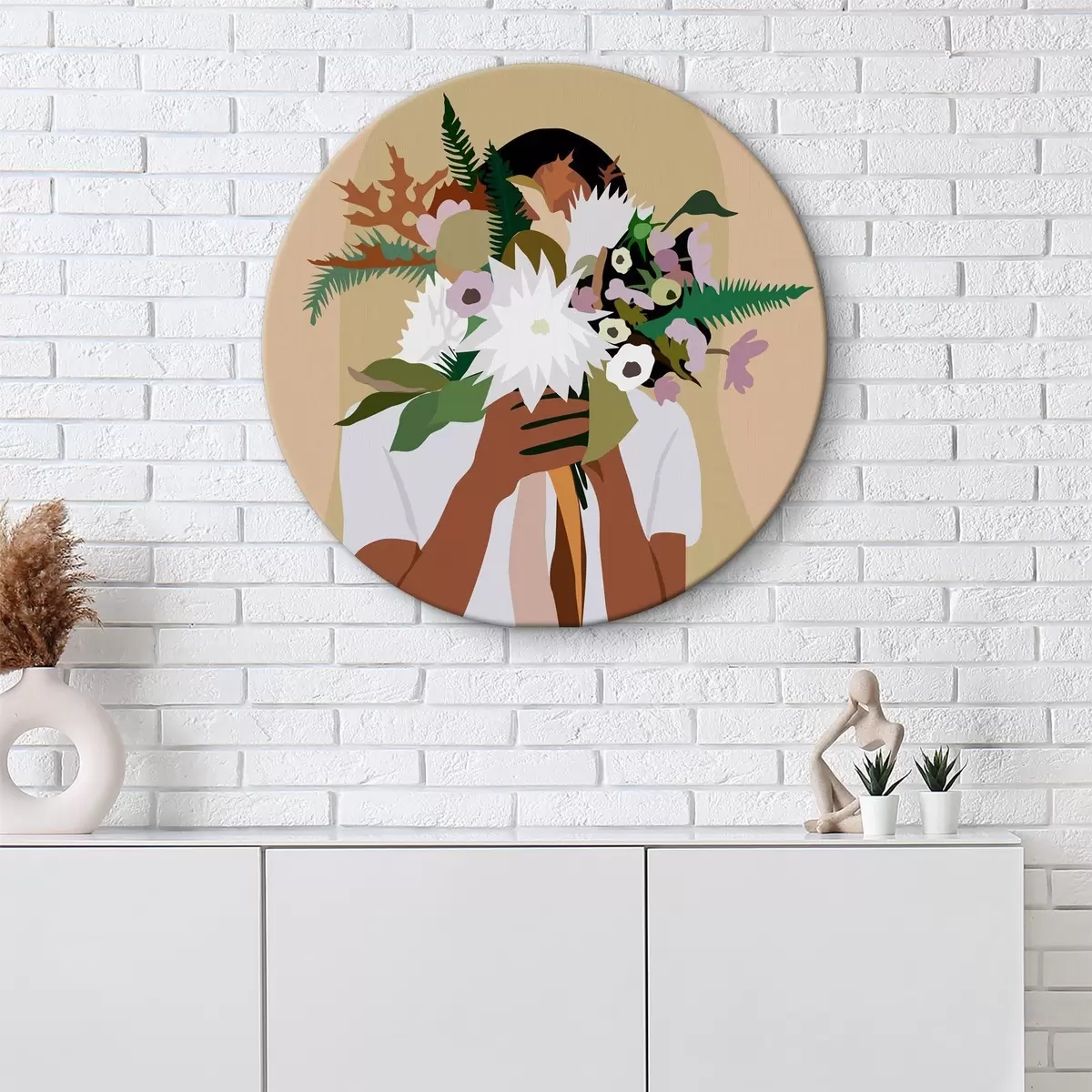 Picturi rotunde Fata cu un buchet de flori abstract stil boho Nr r36367