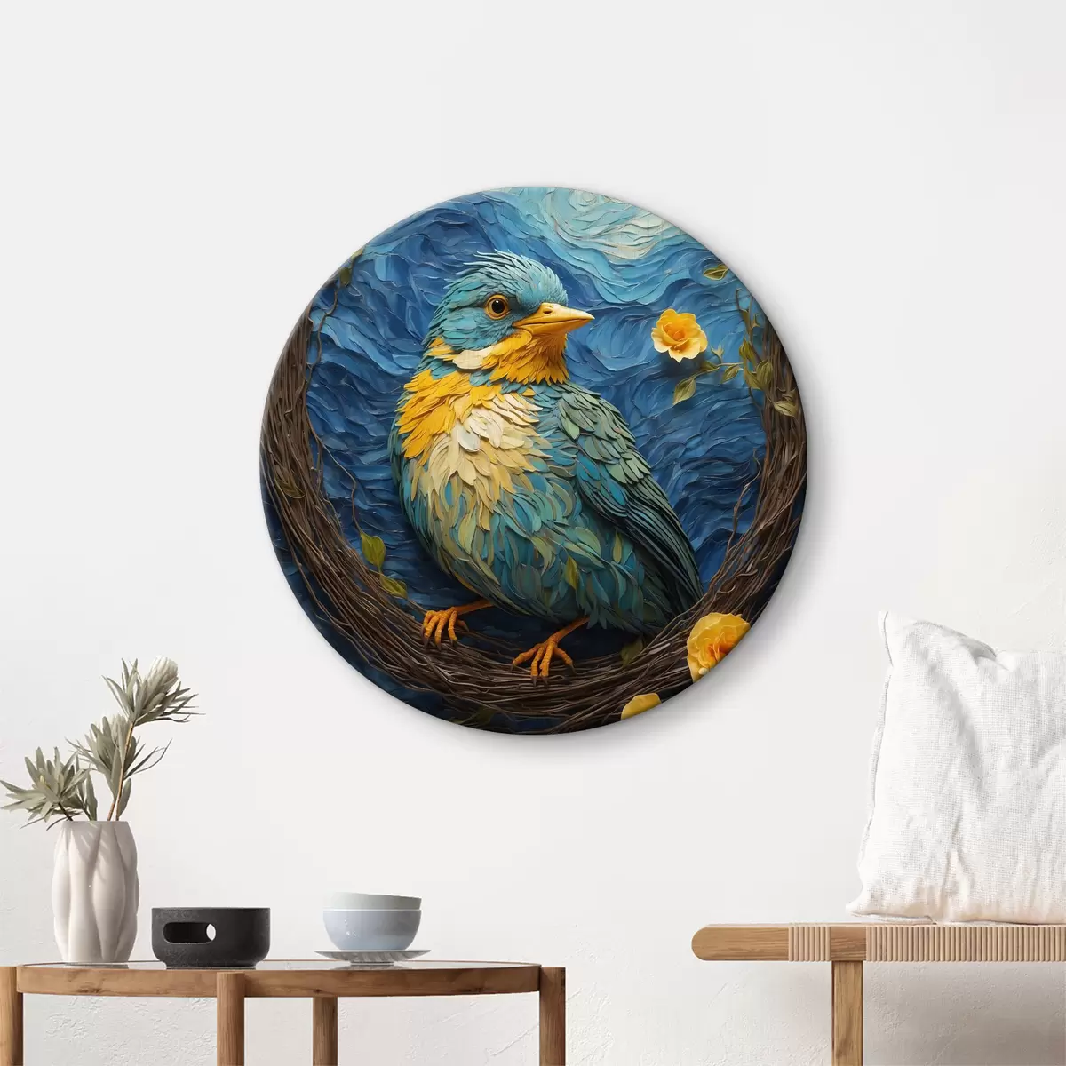 Picturi rotunde Un cuib vibrant într-o coroană de flori liniștită r36440