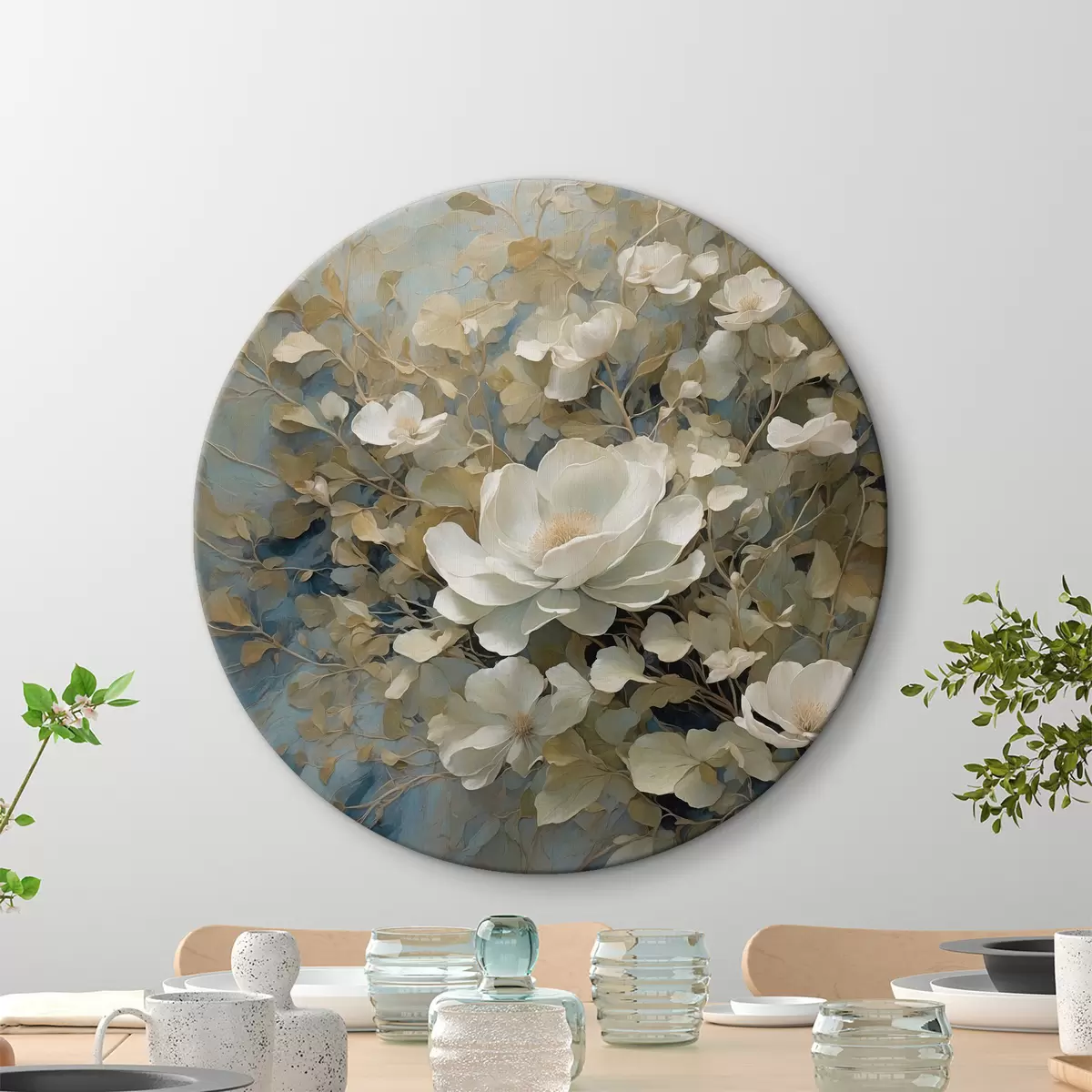 Picturi rotunde Flori albe pe vreme rea r36442