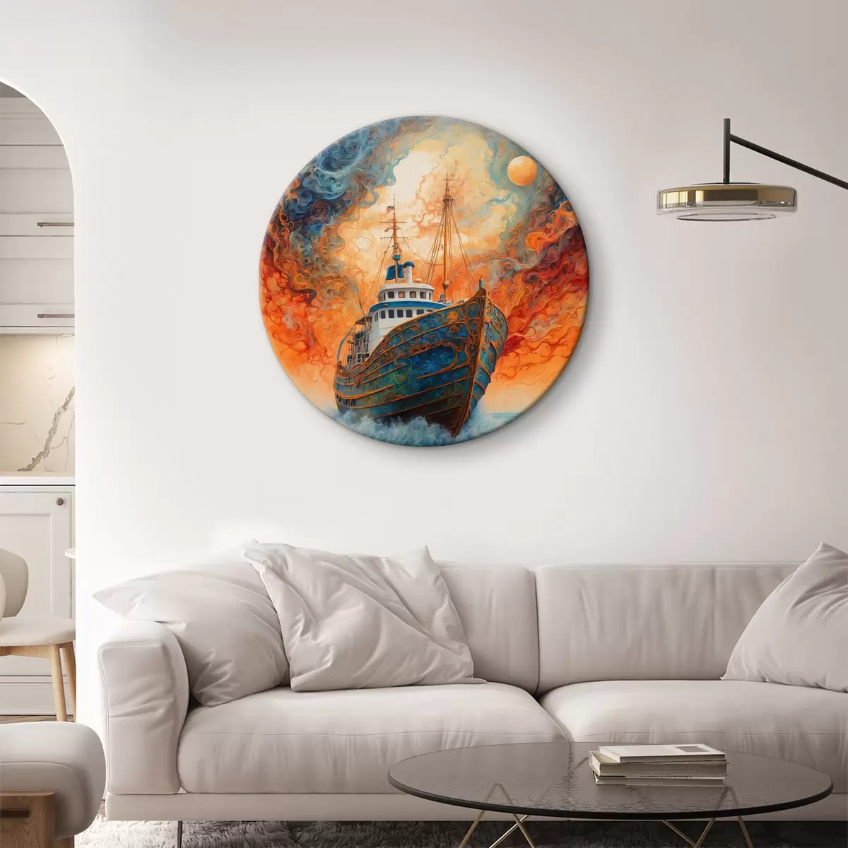 Picturi rotunde Navă plutitoare pe fundalul unui cer fantastic. r36443