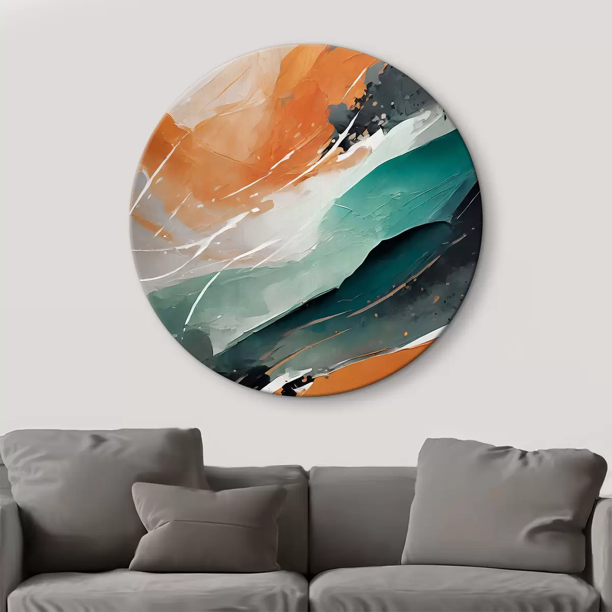Picturi rotunde Arta acrilică abstractă, accident vascular cerebral, textura de vopsea, portocaliu, albastru culori r36497